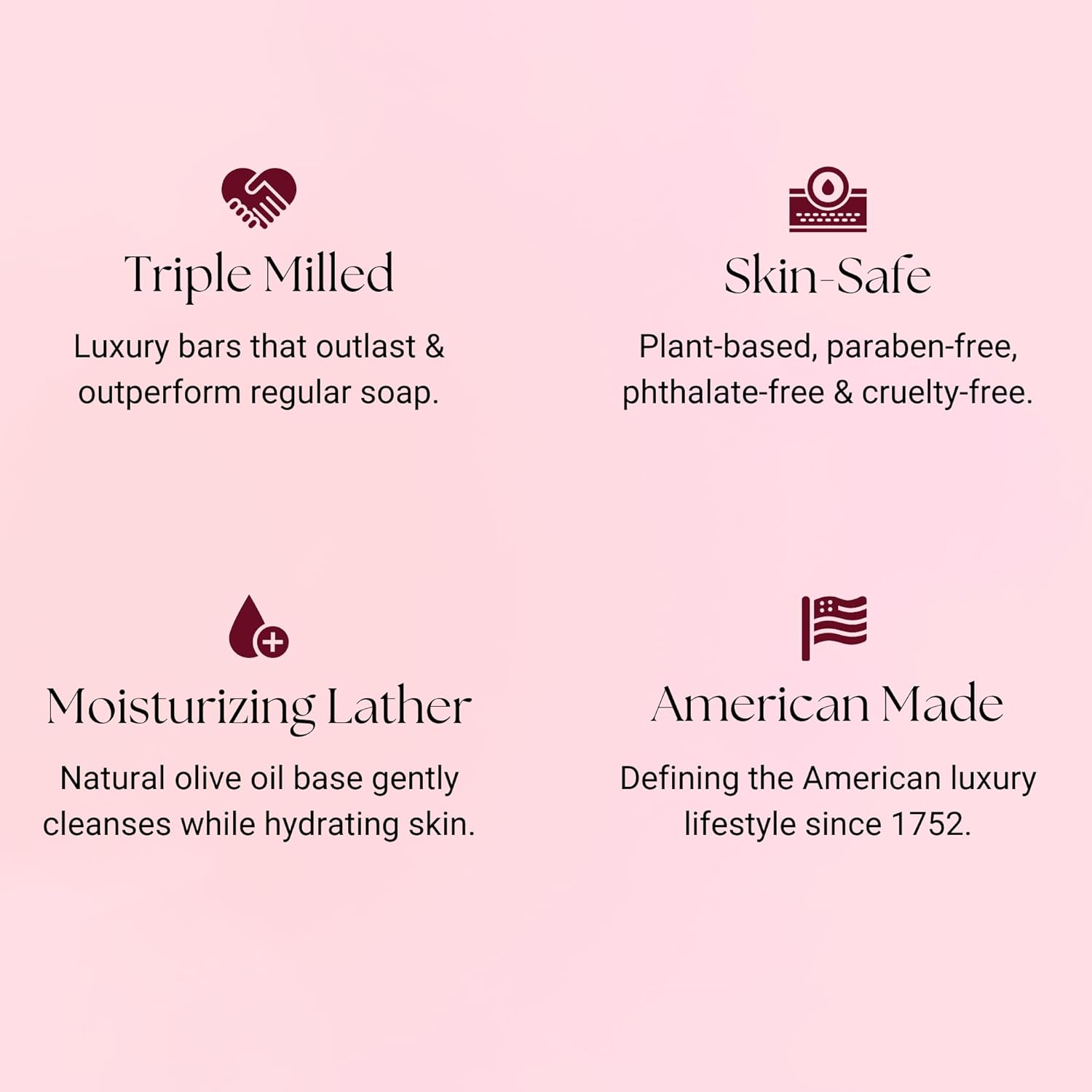 Triple-Milled for Lasting Moisture: Crafted for a rich, creamy lather, this luxury soap is triple-milled and glycerin-rich to deeply hydrate, soften, and nourish all skin types.