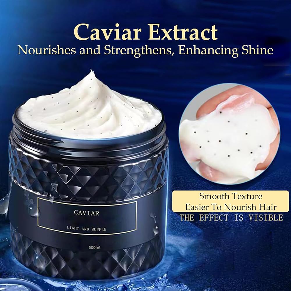 【Suitable for All Hair Types】 Whether you have curly, straight, or wavy hair, this caviar deep repair mask is designed to provide intense moisture and care to all hair types, promoting smooth, healthy hair