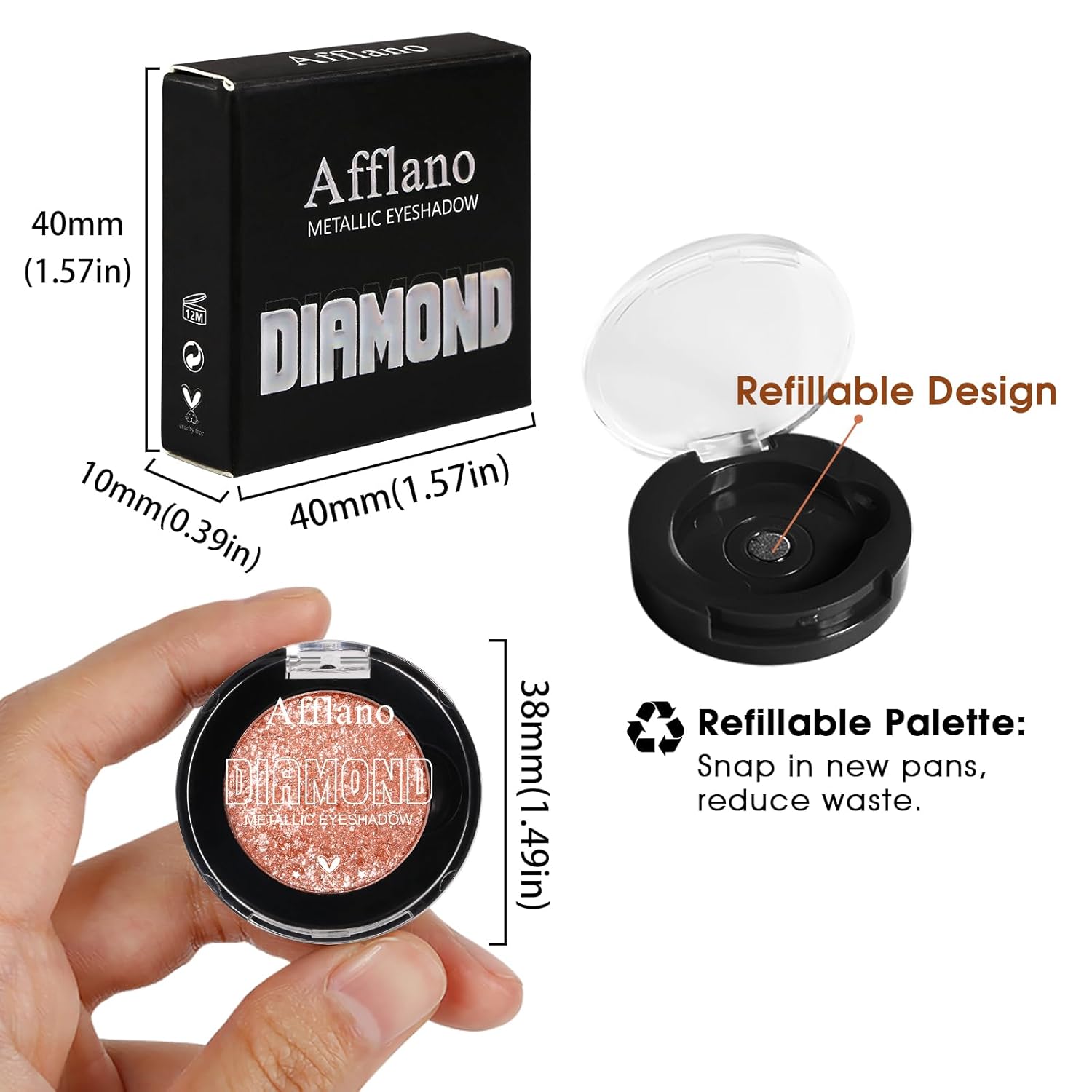 🦩💎Long-Lasting & Smudge-Proof: The champagne shimmering shadow than contains fines sparkle glittering particles than can be used alone or on top of another shadow, no fading off. Infused with a lightweight, creamy texture. And the long lasting glitter eyeshadow adheres securely to eyelids to 12 hours, works best with a primer to help it adhere.