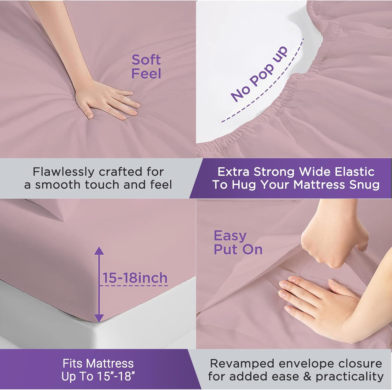EXTRAORDINARY 4-PIECE KING SHEET SET – This meticulously crafted set includes everything needed for a flawless fit: 1 deep-pocket fitted sheet(78″ X 80″), 1 generously sized flat sheet (110″ X 102″), and 2 indulgently soft pillowcases(20″ X 40″).