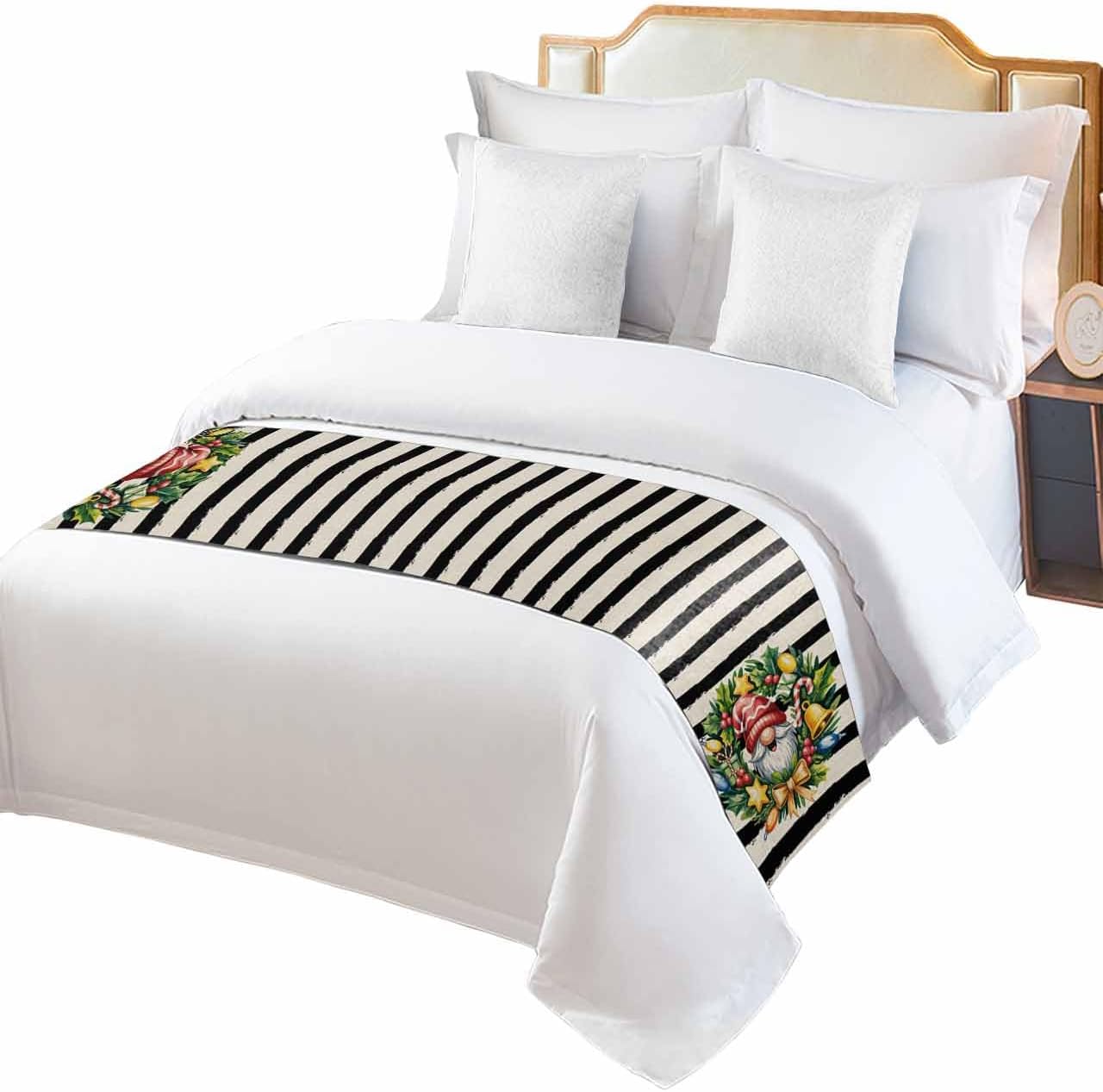 Christmas Bed Runner Scarf Cal King Size, Country Gnomes Pine Branches Star Bell Striped Luxury Bed Throw Runners & Scarves for Foot of Bed, Bedroom Hotel Wedding Room Decoration, 102″x20″