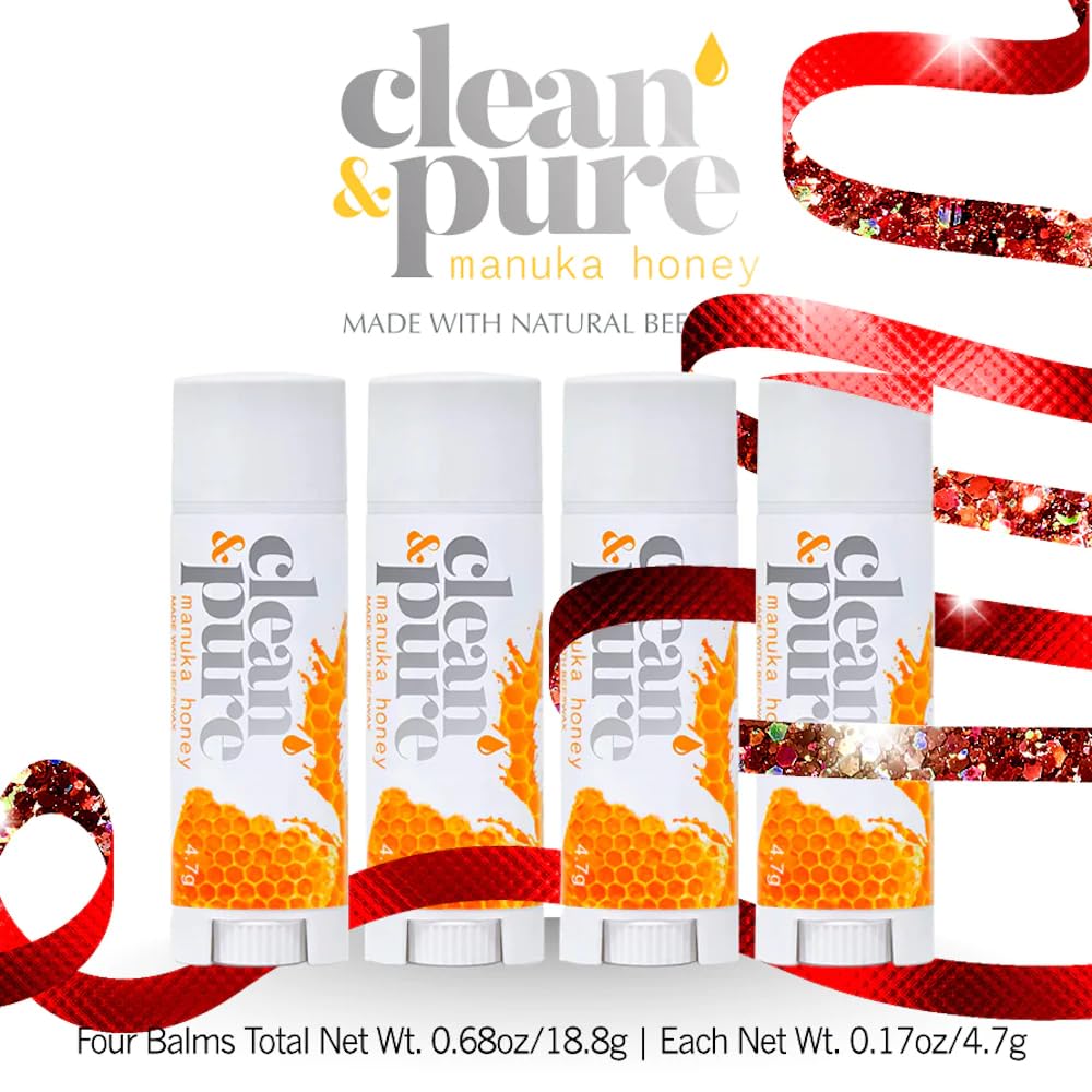 The Clean & Pure Beekeeper’s Favourite collection features 4 flavored lip balms, each made with Manuka honey, beeswax, Vitamin E oil, and extra virgin olive oil.