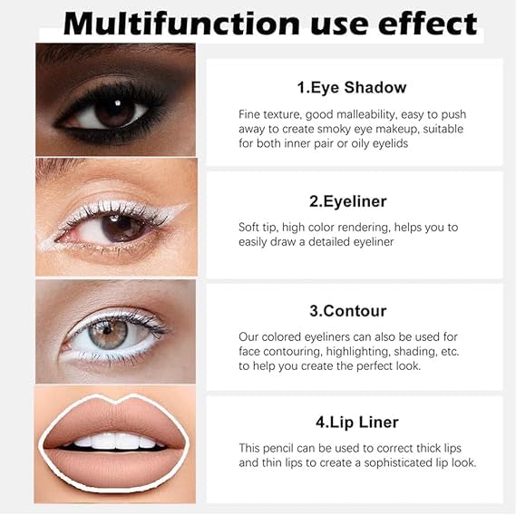 ❤【Multifunctional Use】The Colorful Eyeliner Pencil can be not only for eye makeup, but also a lip liner for lip liner, or an eye shadow and eyebrow pencil. This 4-in-1 colored eyeliner set can give you a different sense of use.