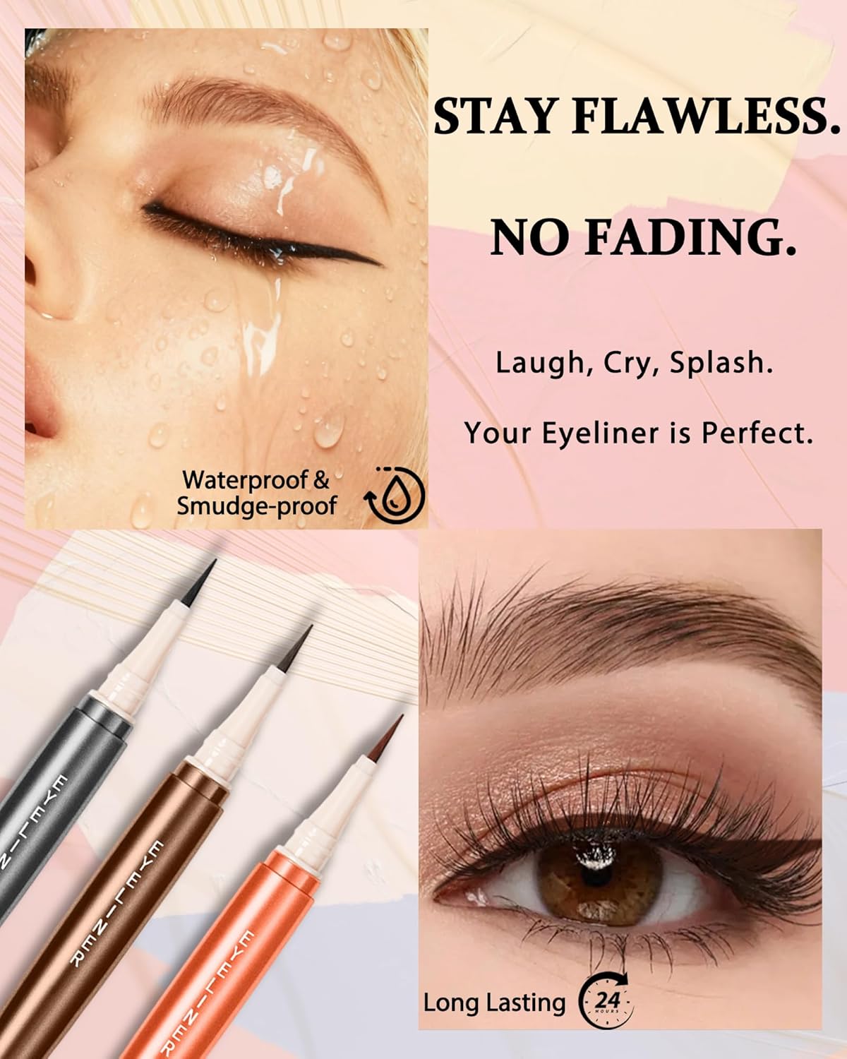 asy To Apply & Remove – Meticulously designed to suit all ages, from youthful beginners to mature women. Precision tip ensure optimal comfort and flawless, empowering everyone to create flawless eye looks with confidence. When removing makeup, it washes off easily with regular makeup remover, no rubbing required, reducing damage to the eyelashes and eyes.