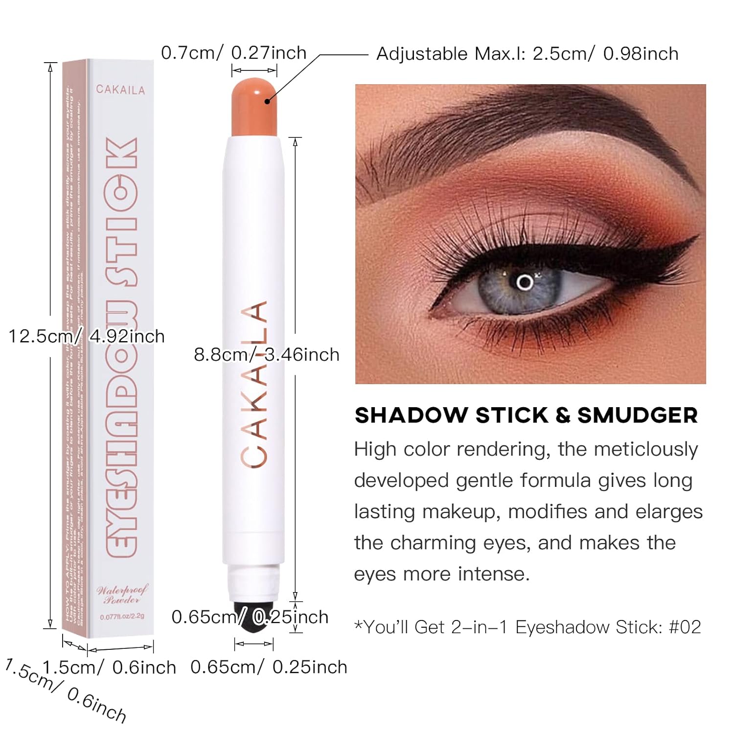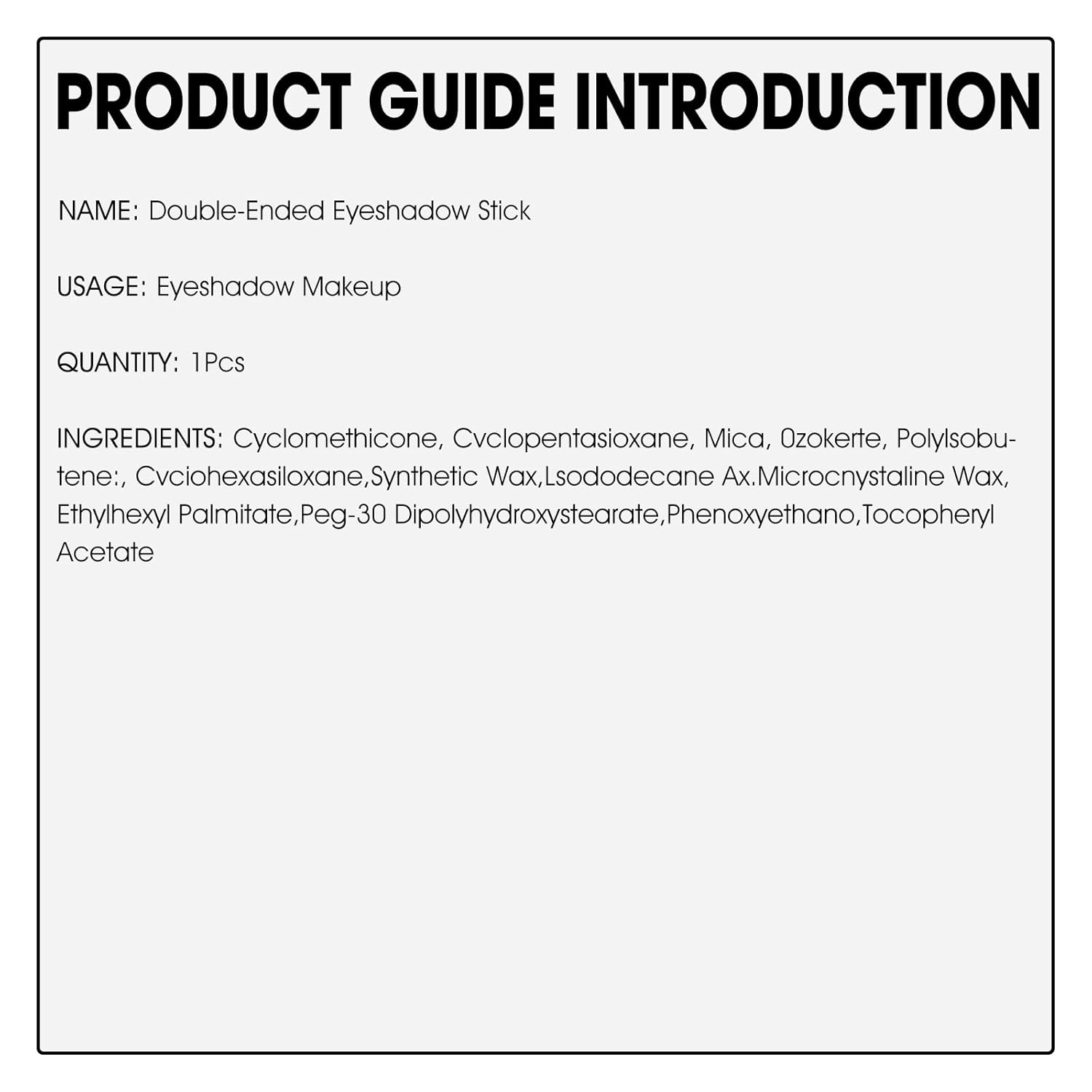 【2-in-1 Cream Eyeshadow Stick】Unique double-headed design with the shadow on one end and the sponge smudger on the other. Both ends have caps. Lightweight and convenient, easy to carry out. The soft creamy texture that is delicate and skin friendly, goes on smoothly like silk without clumping, jumping or smudging. Waterproof and sweatproof for long-lasting wear.