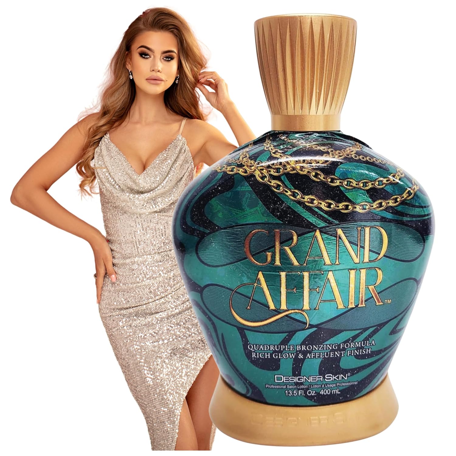 Designer Skin Grand Affair Quadruple Bronzing Tanning Lotion – 13.5 fl. oz. ATO Defense: Decreases after-tan odors and keeps skin smelling fresh. Silicone Blend, Microbiome Balance, Cruelty-Free, Pear Fragrance