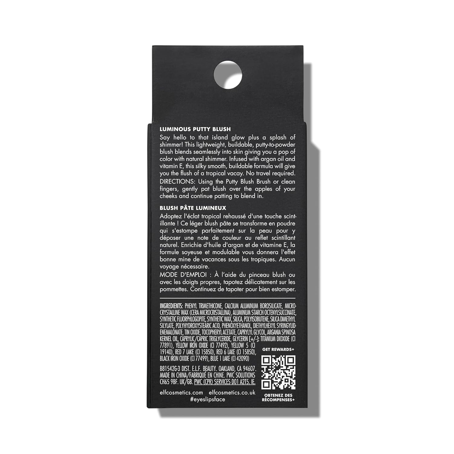 What is it : A putty-to-powder, buildable blush that adds a pop of color to your complexion, now with a subtle shimmer finish. Why we love: Your favorite Putty Blush, now with a shimmer finish for a glowing complexion Highly pigmented, creamy formula melts into skin Lightweight, buildable formula Transforms from cream to a luminous powder finish Infused with Argan Oil and Vitamin E for a boost of hydration Key ingredients: Argan Oil and Vitamin E – helps nourish and moisturize the skin. Get glowing with your favorite Putty Blush, now available in six new shades with a subtle shimmer finish! Lightweight yet buildable, this unique putty-to-powder blush blends seamlessly and melts into skin, giving your cheeks a pretty pop of color and lit-from-within glow. Plus, it’s infused with argan oil and vitamin E to deliver skin-nourishing benefits. Use with our Putty Blush Brush for easily, flawless application. All e.l.f. products are free from phthalates, parabens, nonylphenol ethoxylates, triclosan and triclocarban. Proud to be 100% vegan, cruelty-free, and Leaping Bunny Certified. Because kindness is chic.