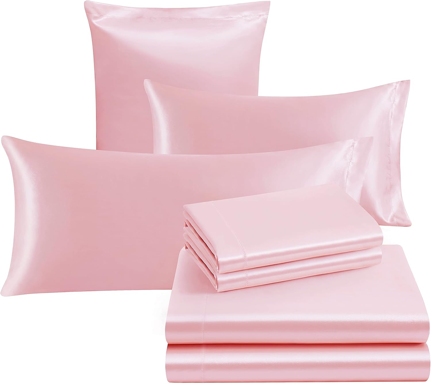ENJOY AFFORDABLE LUXURY SATIN SHEET SET – Twin Size Satin Sheets Set Including 1 Deep Pocket Fitted Sheet (39″x75″+15″), 1 Flat Sheet (63″x93″), 1 Queen Pillowcases (20×30″) and 1 Body Pillowcases (20″x54″). Compared with other fabrics, the silky satin sheet fabric is beneficial to reduce the adhesion of dust and can resist wrinkles and stains.