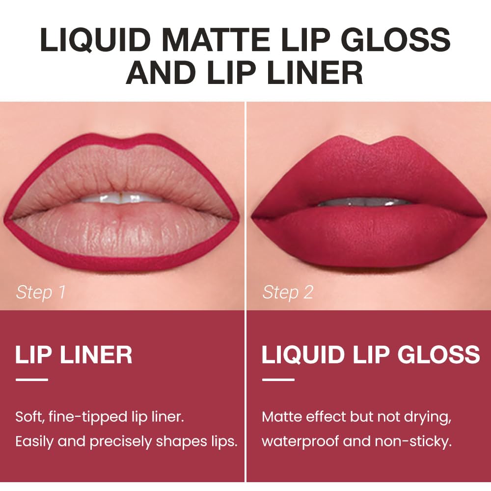 【Smooth Applicator】Lip liner glides on effortlessly for precise lining, while the lip gloss delivers a glossy, non-sticky finish.