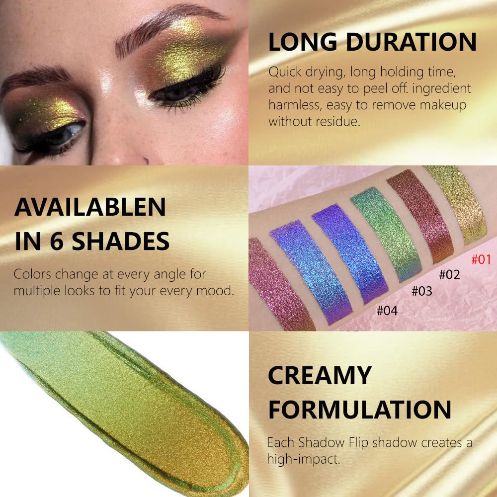 【Smooth & Lightweight Formula】This creamy, quick-drying eyeshadow glides effortlessly onto eyelids for a comfortable, lightweight feel. Non-sticky and easy to layer or blend, it’s suitable for creating both subtle shimmer or dramatic chameleon looks.