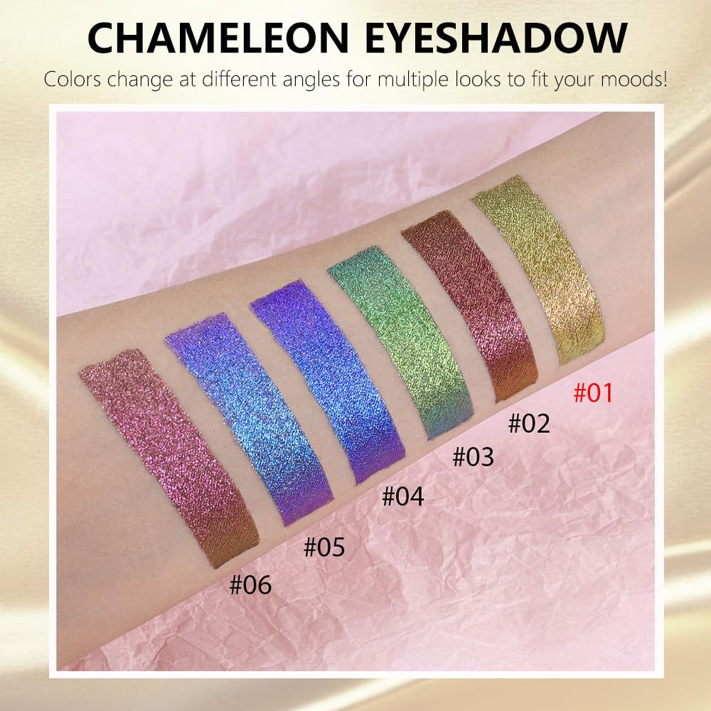 【Color-Shifting Duochrome Effect】Experience the magic of duochrome chameleon eyeshadow that shifts colors under different angles and lighting. One swipe reveals stunning multichrome metallic tones, adding depth and dimension for a glamorous eye-catching look.