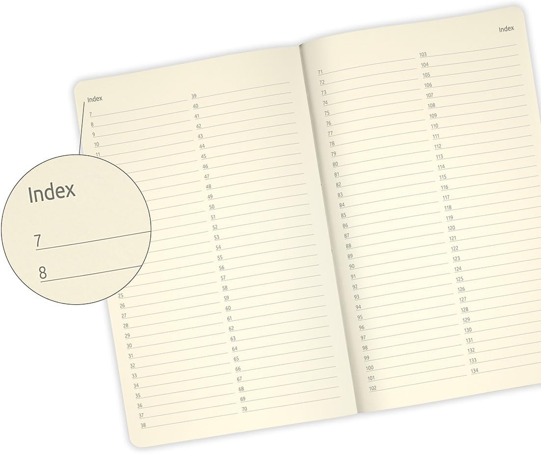 Very soft to the touch, featured by flexible covers and round corners, they are fashionably bound on spine with an hand-made real stitching using a sewing machine, guaranteeing an excellent wear resistance. The perfect solution to quickly and briefly take your most important notes.