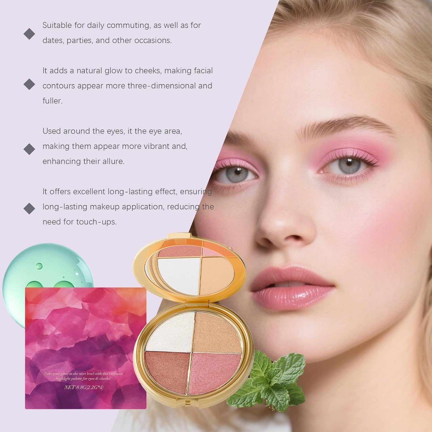 Highlighter Eyeshadow Blush Palette – Radiant Glow 4-Color Compact for Eyes & Cheeks
