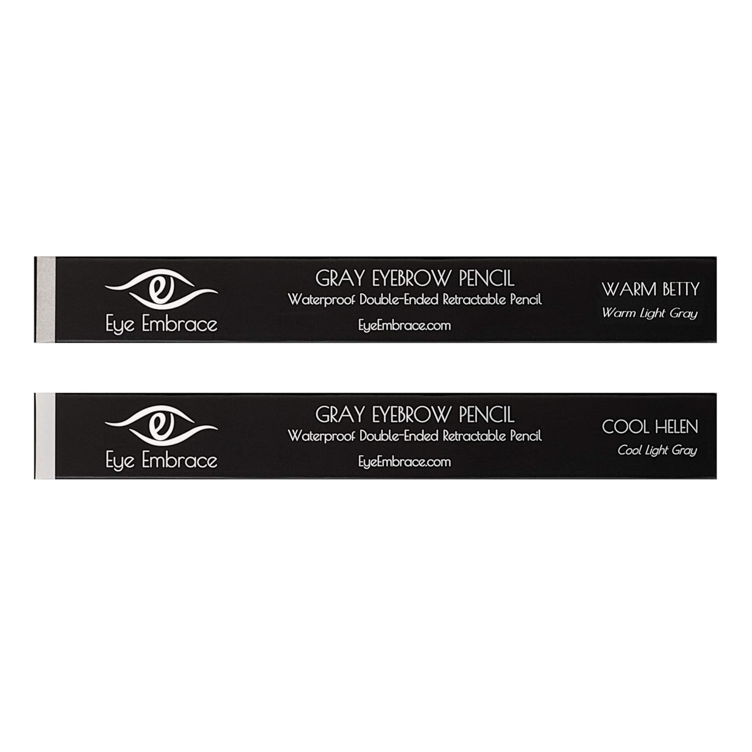 True light gray pencil – Warm Betty for warm undertones and Cool Helen contains a hint of blue for those with cool undertones. Ditch the dye and embrace your natural gray hair. These gray eyebrow pencils are perfect for those with gray hair, silver hair, or salt and pepper hair. Eye Embrace’s exclusive gray brow colors are formulated to blend easily with your natural coloring.