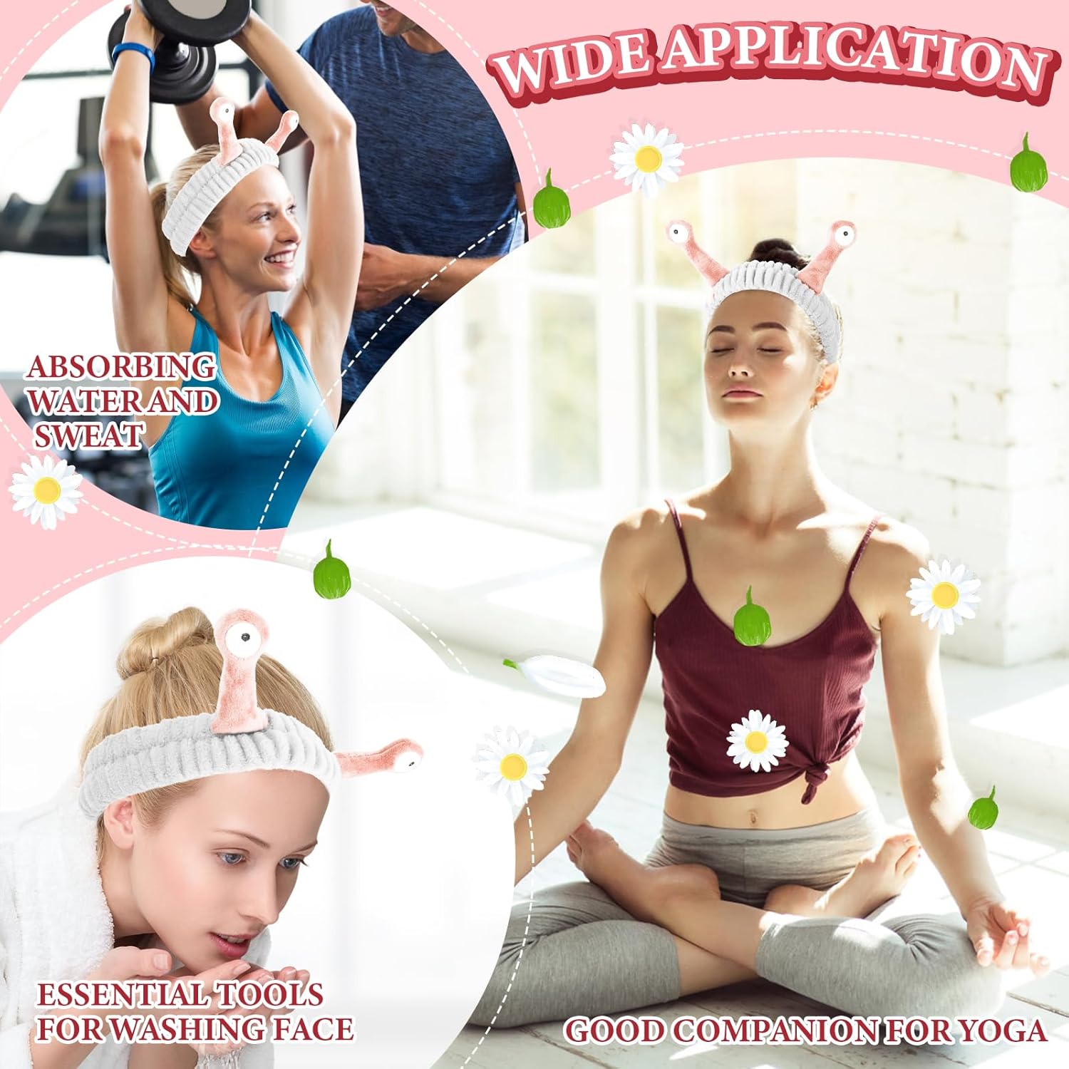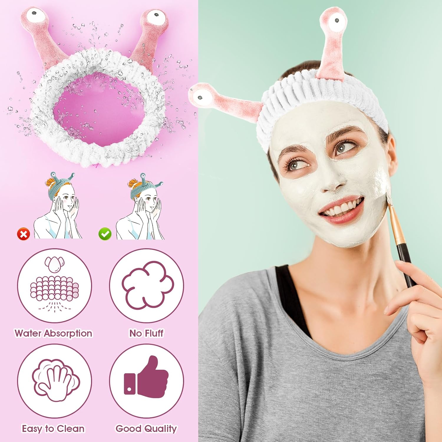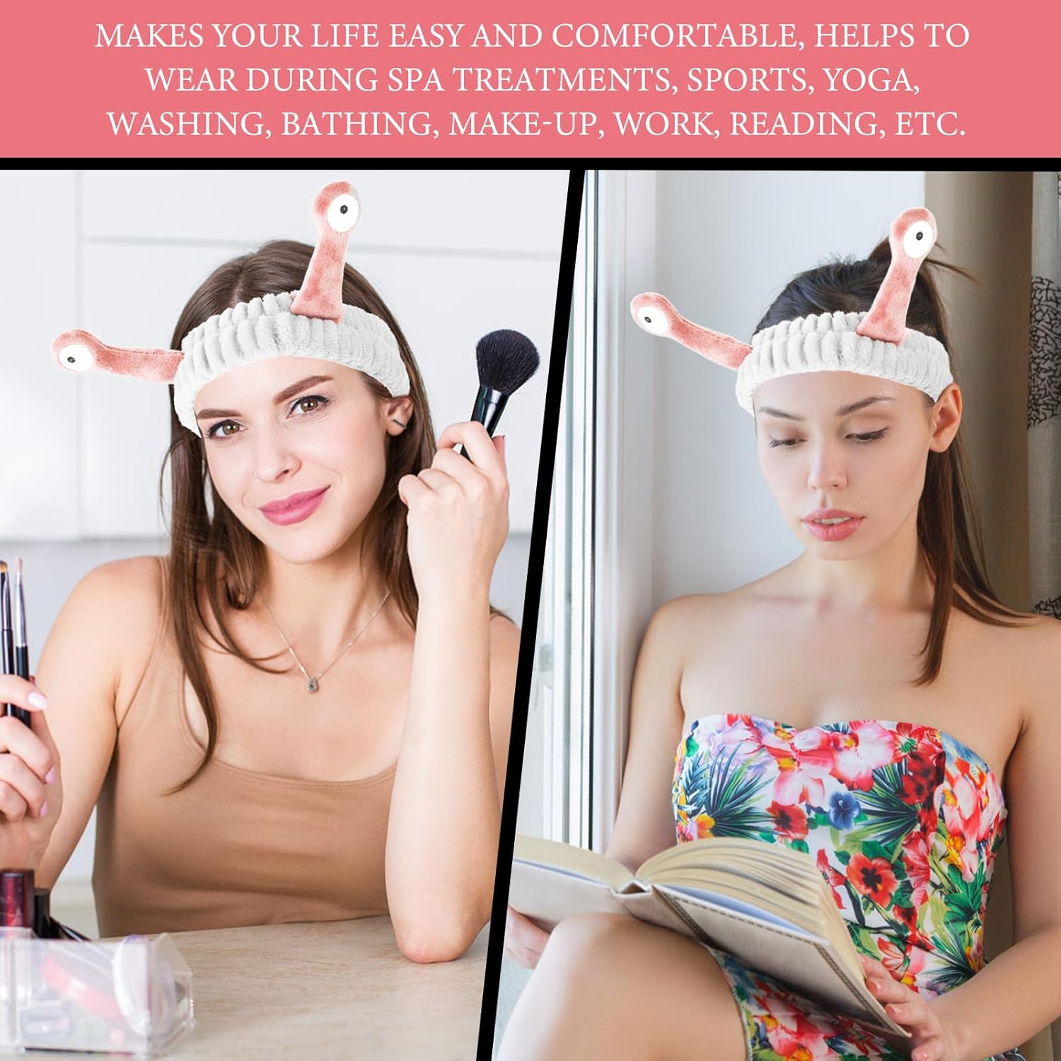 Face Wash Headband, Palm and Snail Spa Hair Bands Makeup Headbands Women Cartoon Cute Coral Fleece Elastic Headband Creative Hair Accessories for Washing Face Shower Sports (Pink&White)
