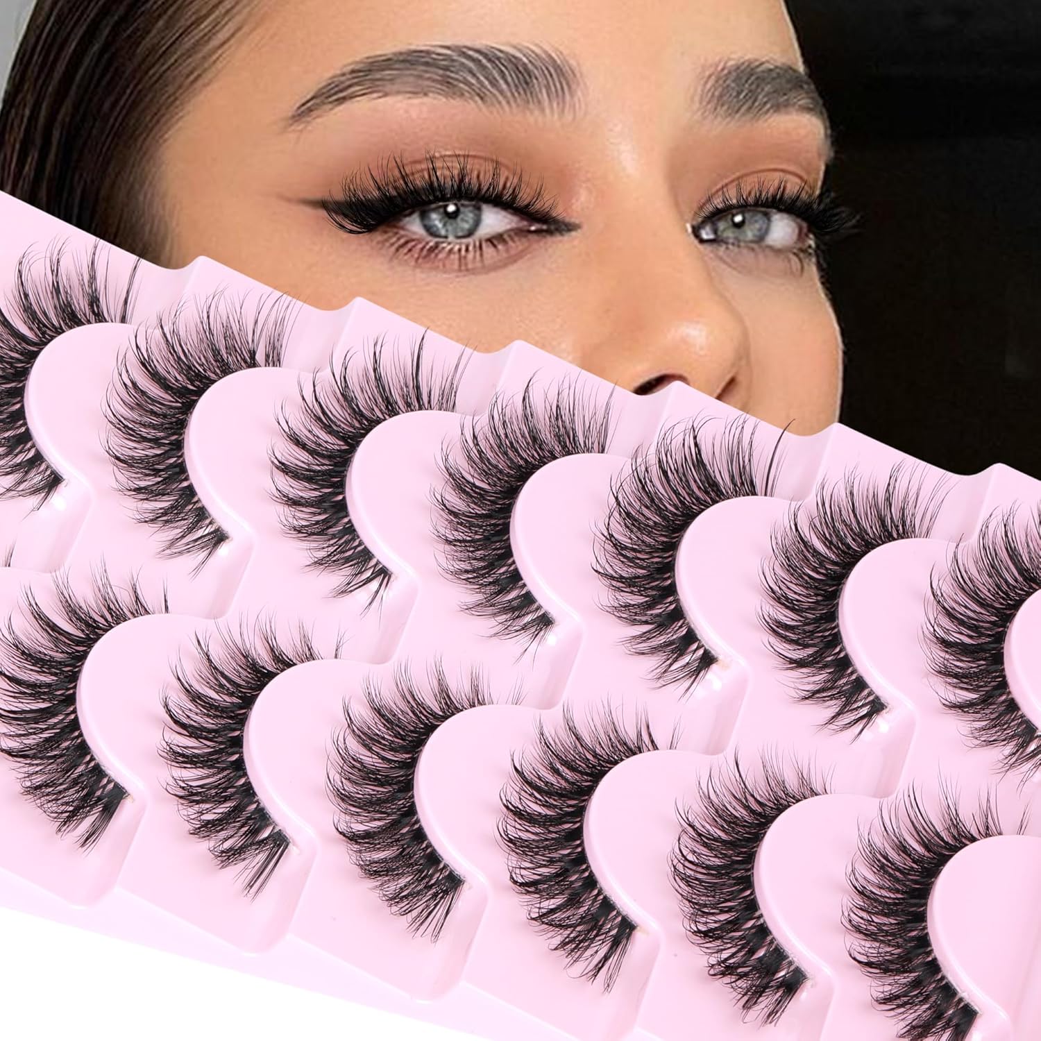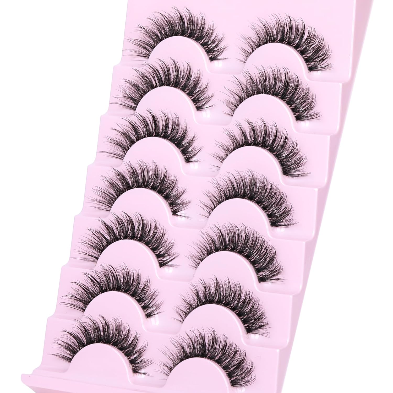 【Quality False Eyelashes】Each lash in this lashes pack is handcrafted with premium lash fiber to offer lightweight, textured lashes with wispy tapered end for natural makeup look. Easily offer all day comfort and achieve a naturally beautiful eye makeup look with these wispy natural lash strips.