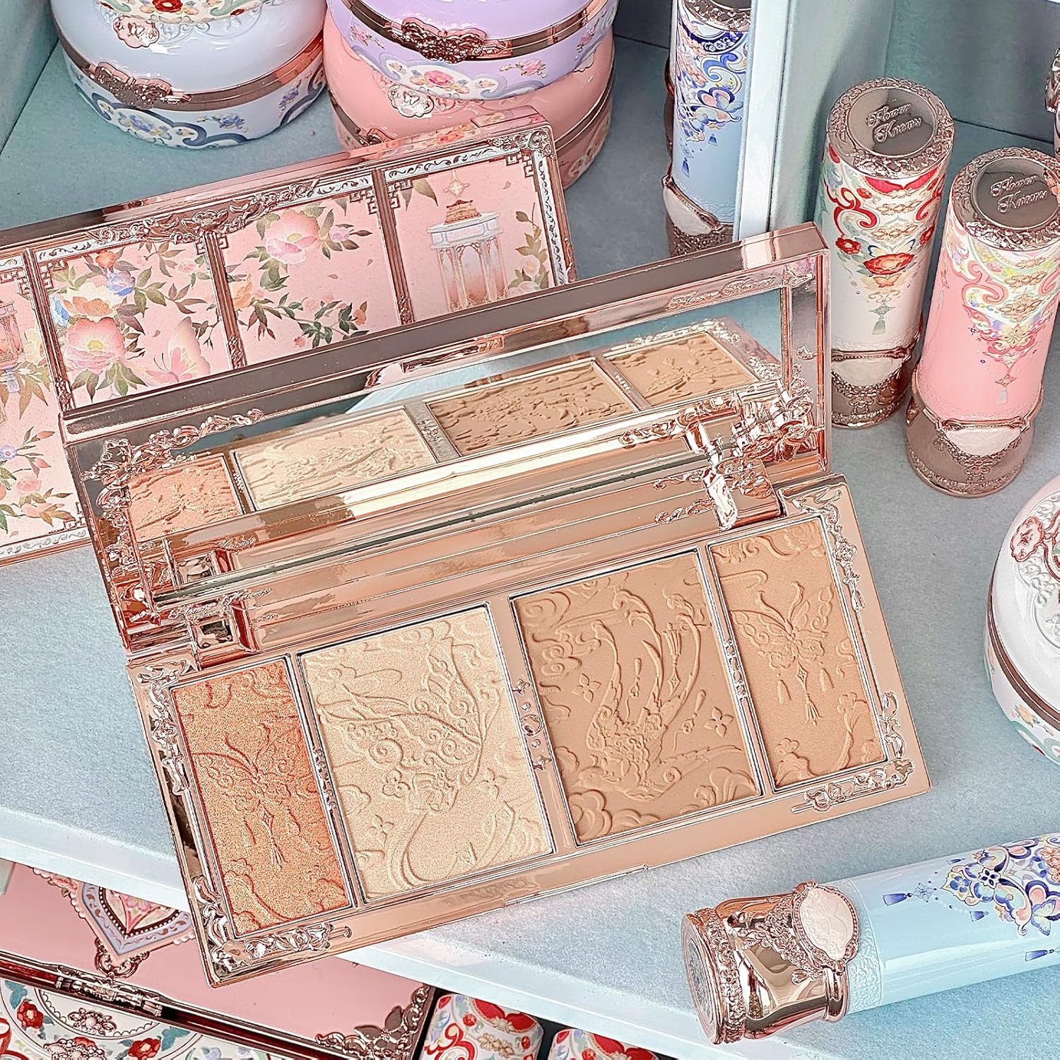 Embrace the perfect fusion of traditional Chinese artistry and modern beauty with the Flower Knows Butterfly Cloud Collar Embossed Highlight & Contour Palette.
