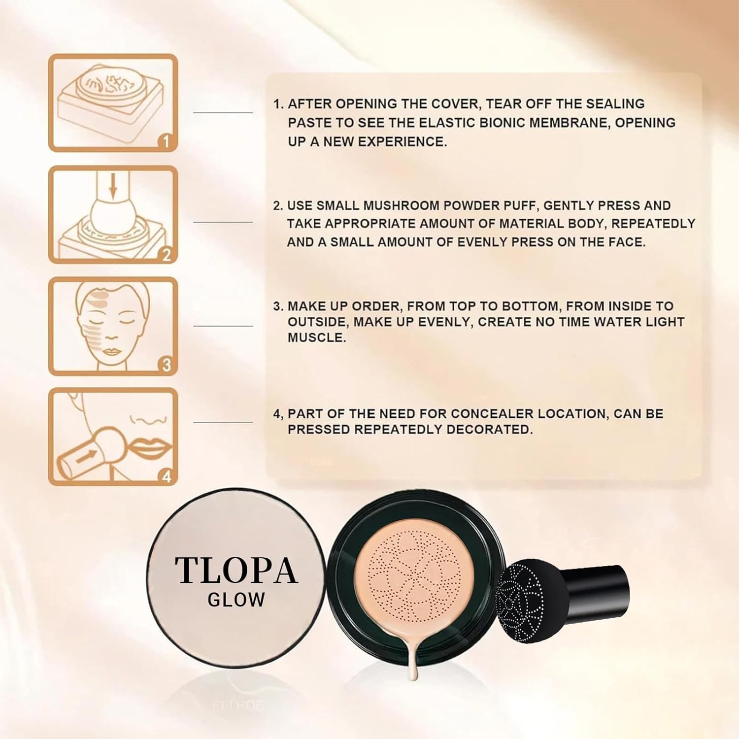 🌸【Long-Lasting Wear & Precise Application】Experience 24-hour wear with our innovative cushion foundation. The unique skin-friendly elastic bionic film allows you to press out a perfectly even and smooth application every time. It brightens your skin tone, expertly hides imperfections like blemishes and pores, and remains comfortable, breathable, and non-comedogenic all day.