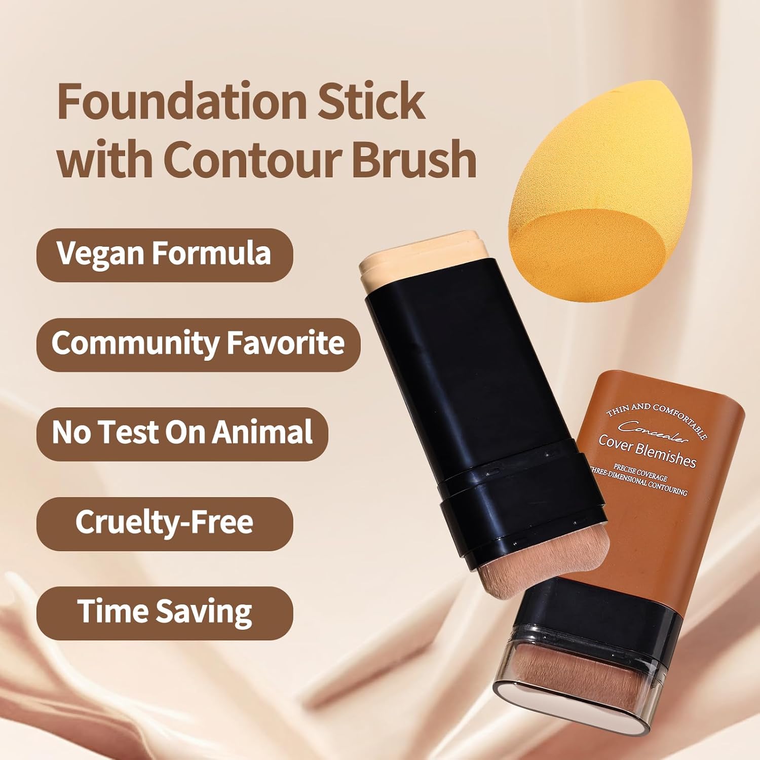 This multi-use foundation makeup stick combines full coverage, hydration, and ease of use, making it a must-have for makeup enthusiasts. Crafted with a blend of nourishing ingredients, the tinted moisturizer for face not only conceals imperfections but also cares for your skin. Its creamy, waterproof formula ensures long-lasting wear formulated to minimize the risk of clogging pores. Whether you’re helping to minimize the appearance of skin discoloration or under-eye areas, this stick foundation makeup delivers buildable coverage that looks natural and feels lightweight. The included dual-ended contour brush features soft, elastic bristles designed to fit the contours of your face, enabling seamless blending for a flawless finish.Use this dewy foundation for precise foundation application, subtle contouring, or highlighting. Suitable for everyday wear, special occasions, or on-the-go touch-ups, this waterproof foundation is your go-to for a radiant and matte look that lasts.