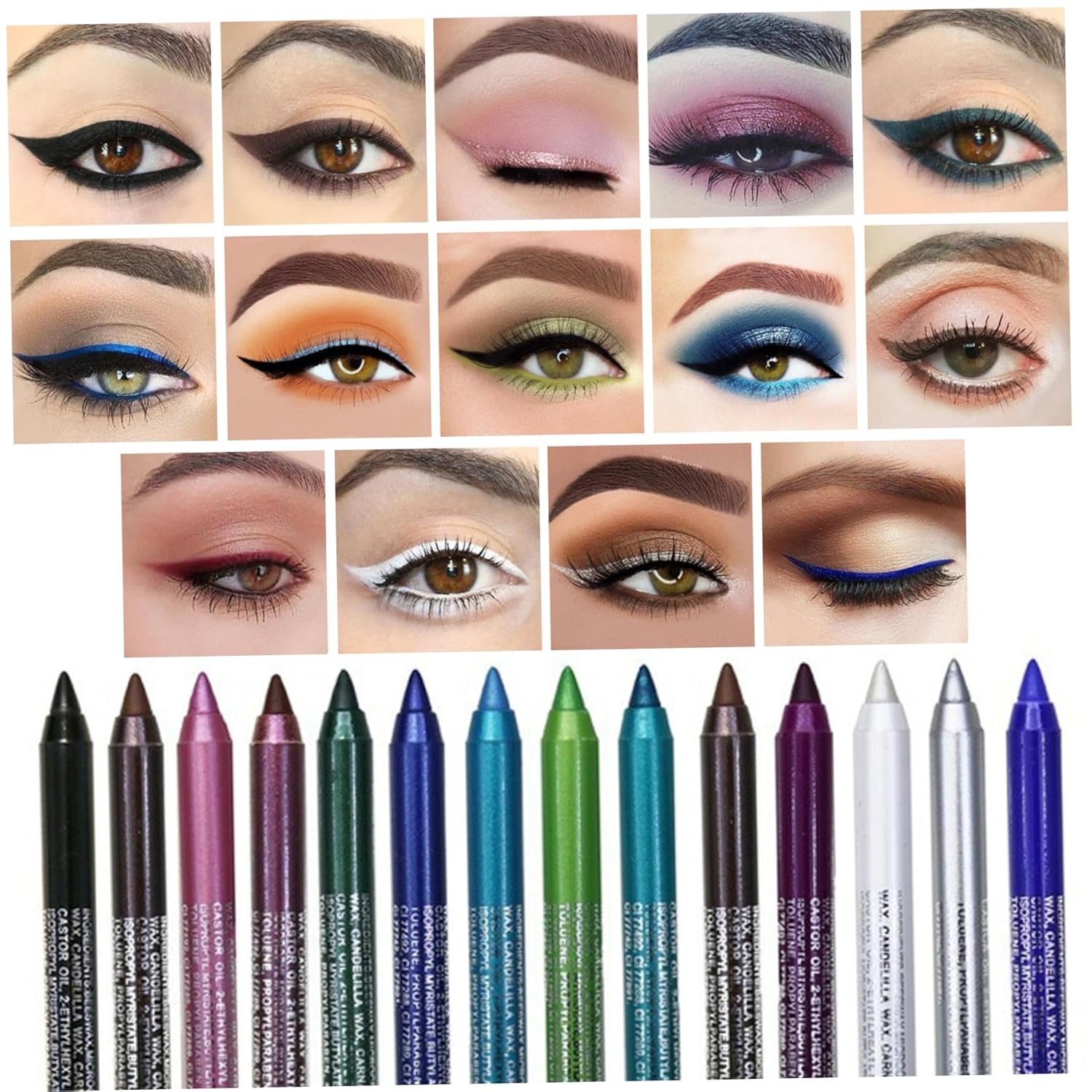 Glitter Eyeliner Pencil, 14Pcs Waterproof Eyeliner Pencil, Smudge-Proof Colored Gel Liners with Metallic & Shimmer Finishes for Precision Looks, Eyeliners