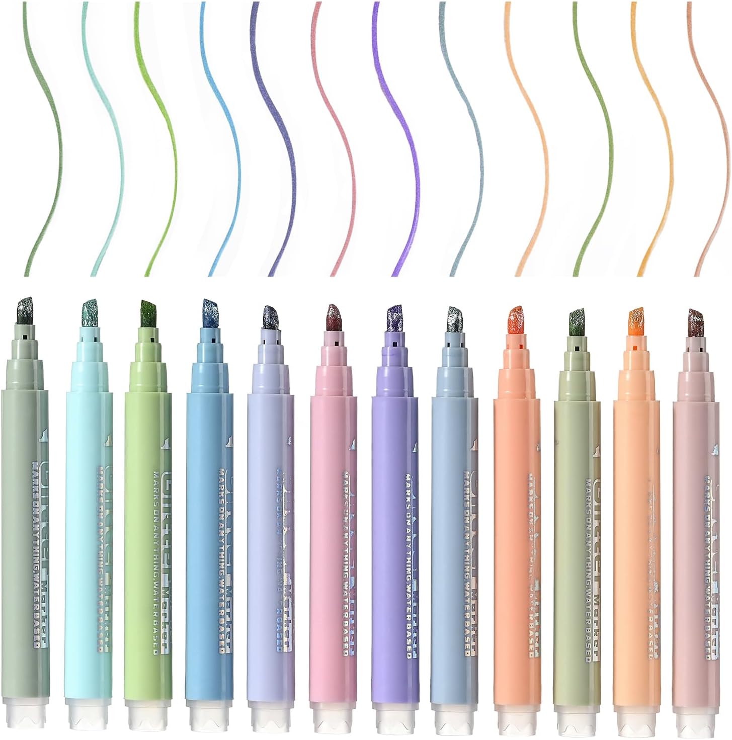 HIGH-QUALITY MATERIAL: The Sparkle Highlighters is water-based, it dries quickly when writing, soft chisel nib does not wear,and won’t easily stain your hands and books, light and portable.