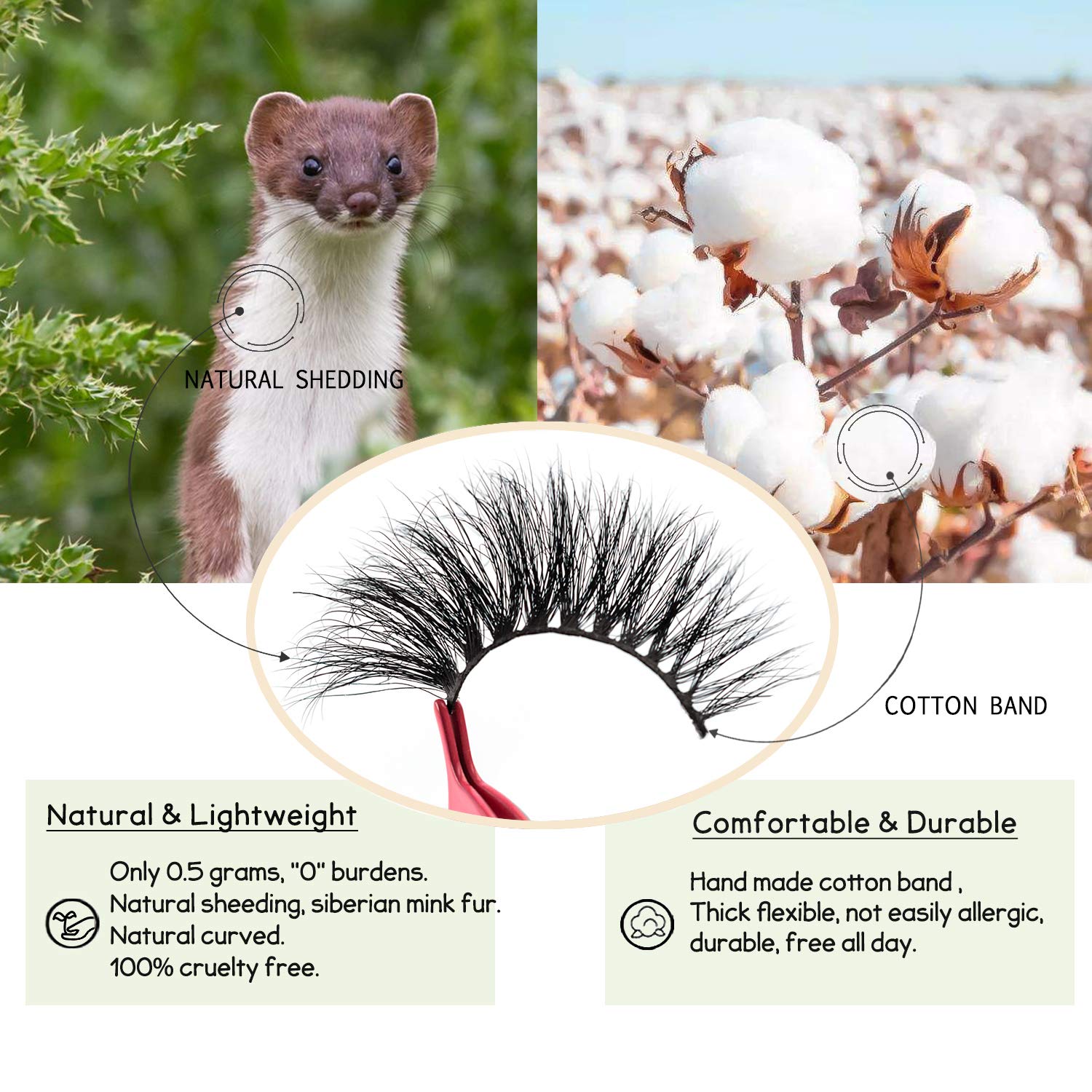 4.【Only 0.5g – Light Weight】 — Each pair of our 3D mink false eyelashes only weighs 0.5 grams. Lightweight “0” burdens, no heavy feeling. You will not even feel their exist on your eyes. Cruelty-free Mink fur. These fine fibers come from the tails of artificial breeding minks’ natural falling fur and are sanitized and dyed before they’re packaged as easy-to-install eyelashes.