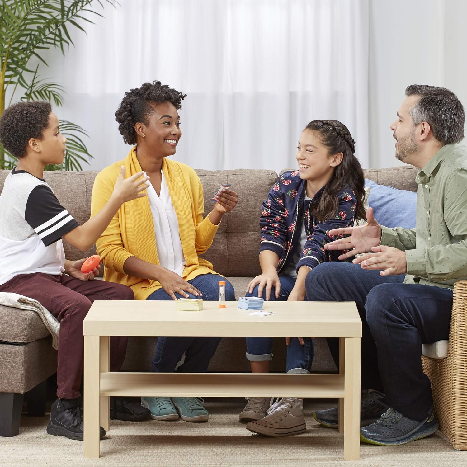 Kids and parents can experience the excitement together in this edition of the Taboo game. The game incudes 2 decks of cards featuring a deck designed especially for kids, featuring a familiar Guess word and only 2 forbidden words on each card. Players race against the included timer as they give clues to get team players to guess as many words as they can within a minute. But don’t mention unmentionables, or it’s time for the squeaker, which means losing the point. The game includes over 1, 000 Guess words on 260 cards — 130 cards for adults, and 130 cards designed with younger kids in mind. The team with the most points wins the family game of unspeakable fun! Hasbro Gaming and all related terms are trademarks of Hasbro.