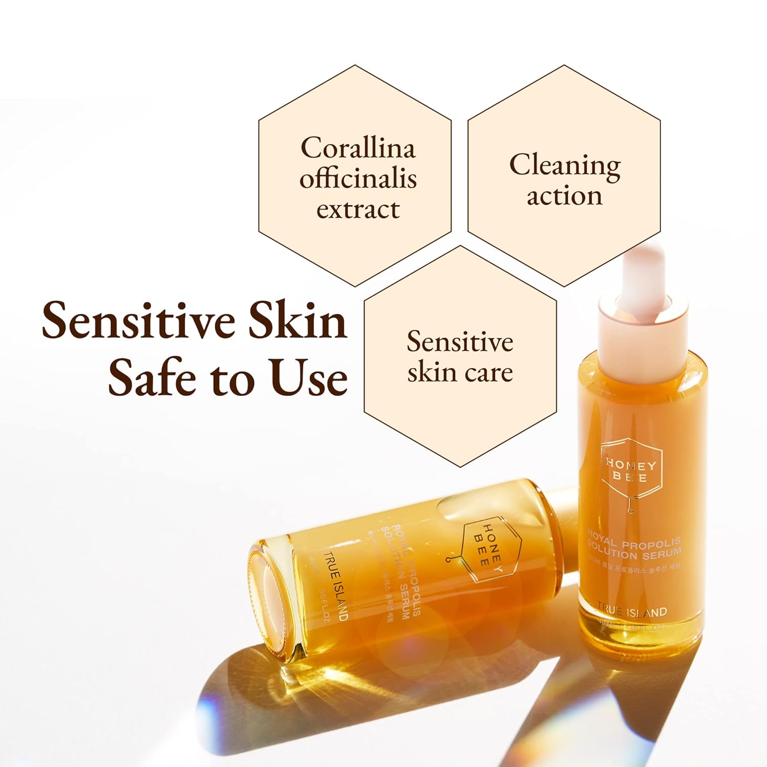 Highly concentrated honey essence that contains royal jelly extract, honey extract, and propolis extract to provide rich moisture and nutrition to the skin.