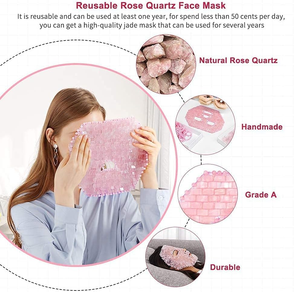 Real rose quartz : quartz facial mask are all pure natural rose quartz, and the rose quartz raw are very rare and imported from Brazil.
