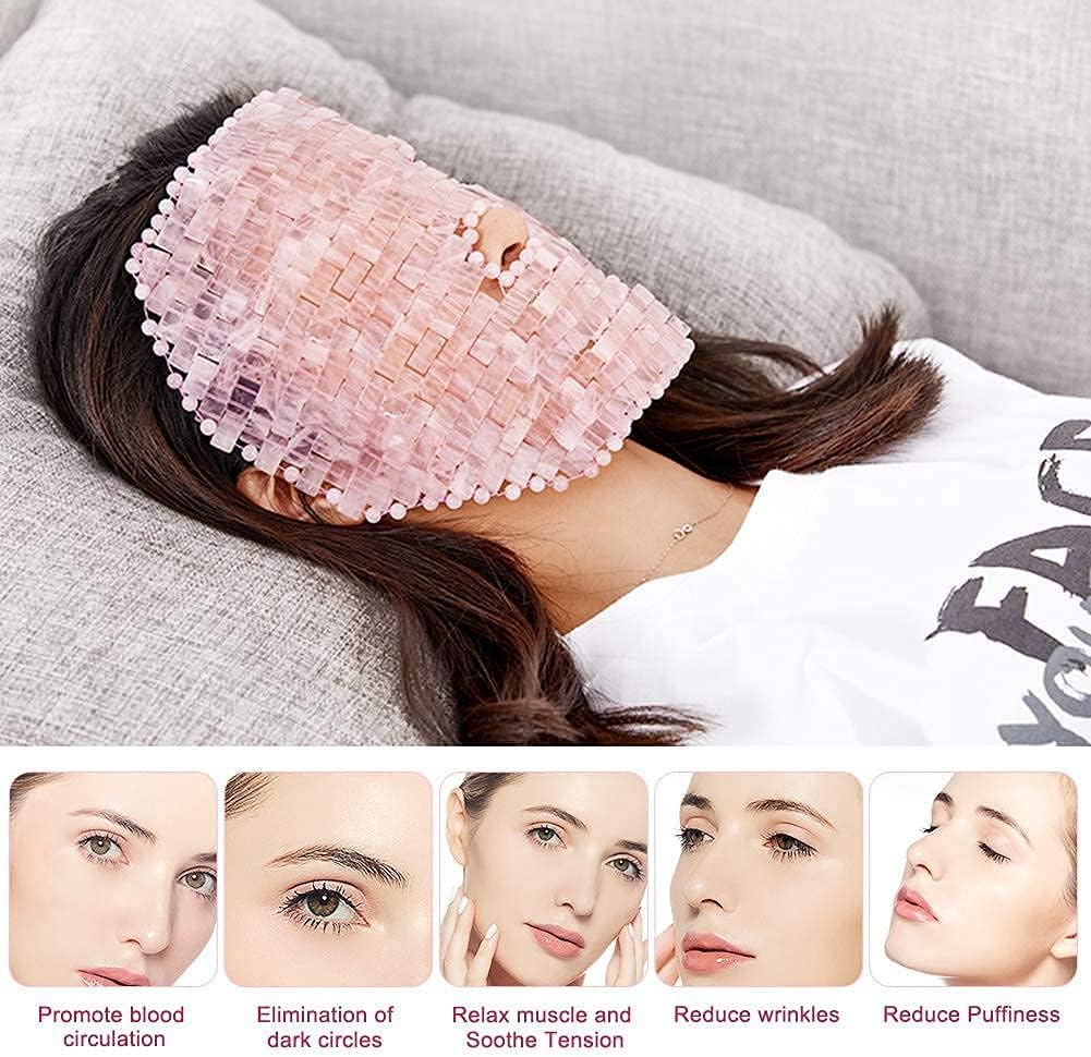 Function:This mask can be used for spa. After applying essence mask, add this rose quartz mask to make the essence better absorbed.Cold jade mask good for migraine relief mask, weight compress mask for puffy eyes, tension, sinus.