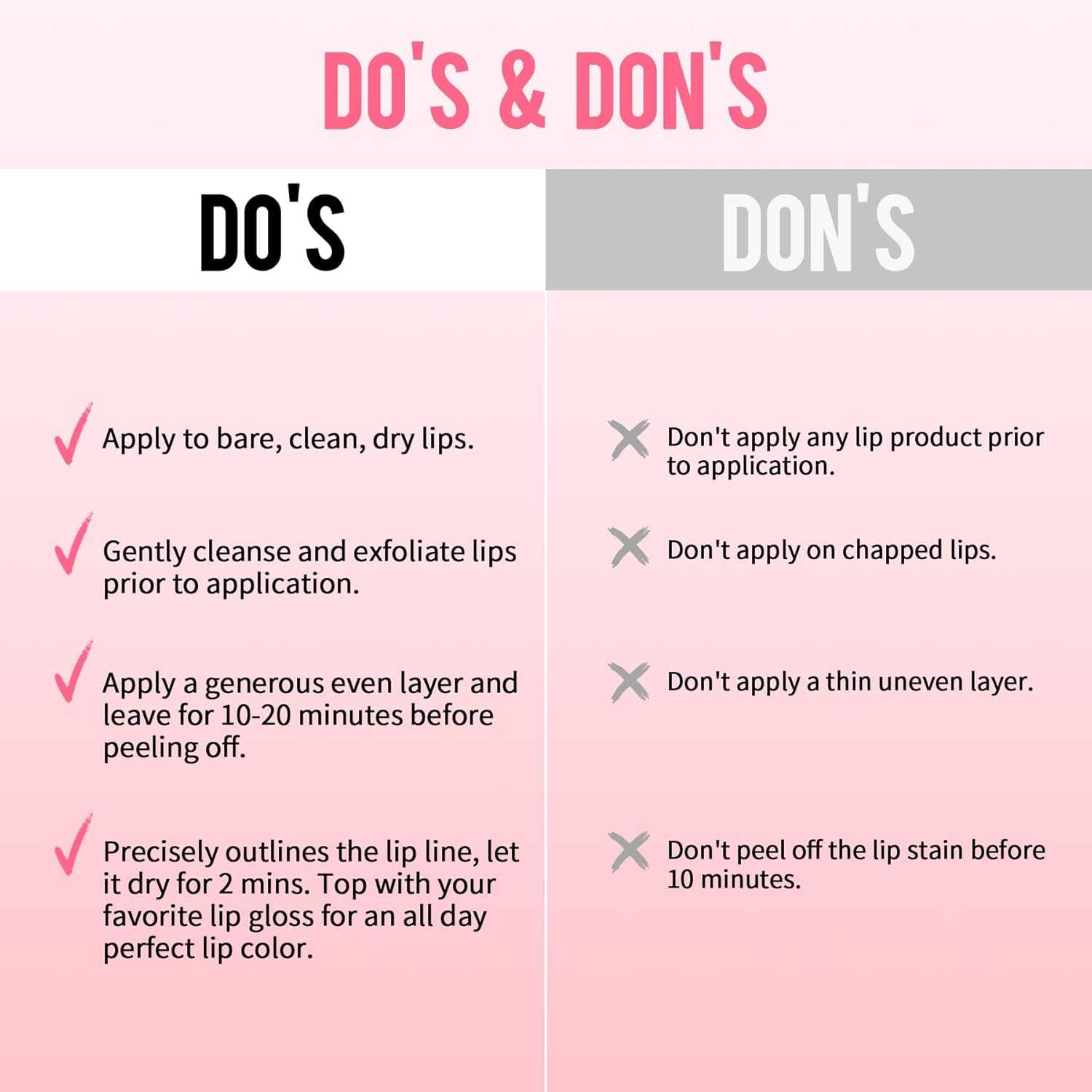 Nourishing Lips: Lip stains peel off infuses colors, pigments into the top layer of lips; Adds color and moisture to lips; Nourishes lips while imparting a long lasting color for plump-looking, charming lips; Works well on clean, exfoliated, dry skin