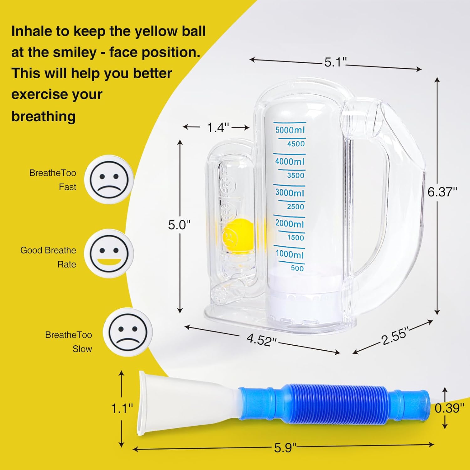 Airflow Indicator for Controlled Breathing:Flow Rate Indicator& Precise Control: Our distinct flow rate ball can guide your breathing. If the yellow ball rises above the upper limit, you are inhaling too quickly; if it stays below the lower limit, you are inhaling too slowly. Aim to keep the indicator at the smile face in middle positio for optimal breathe level.