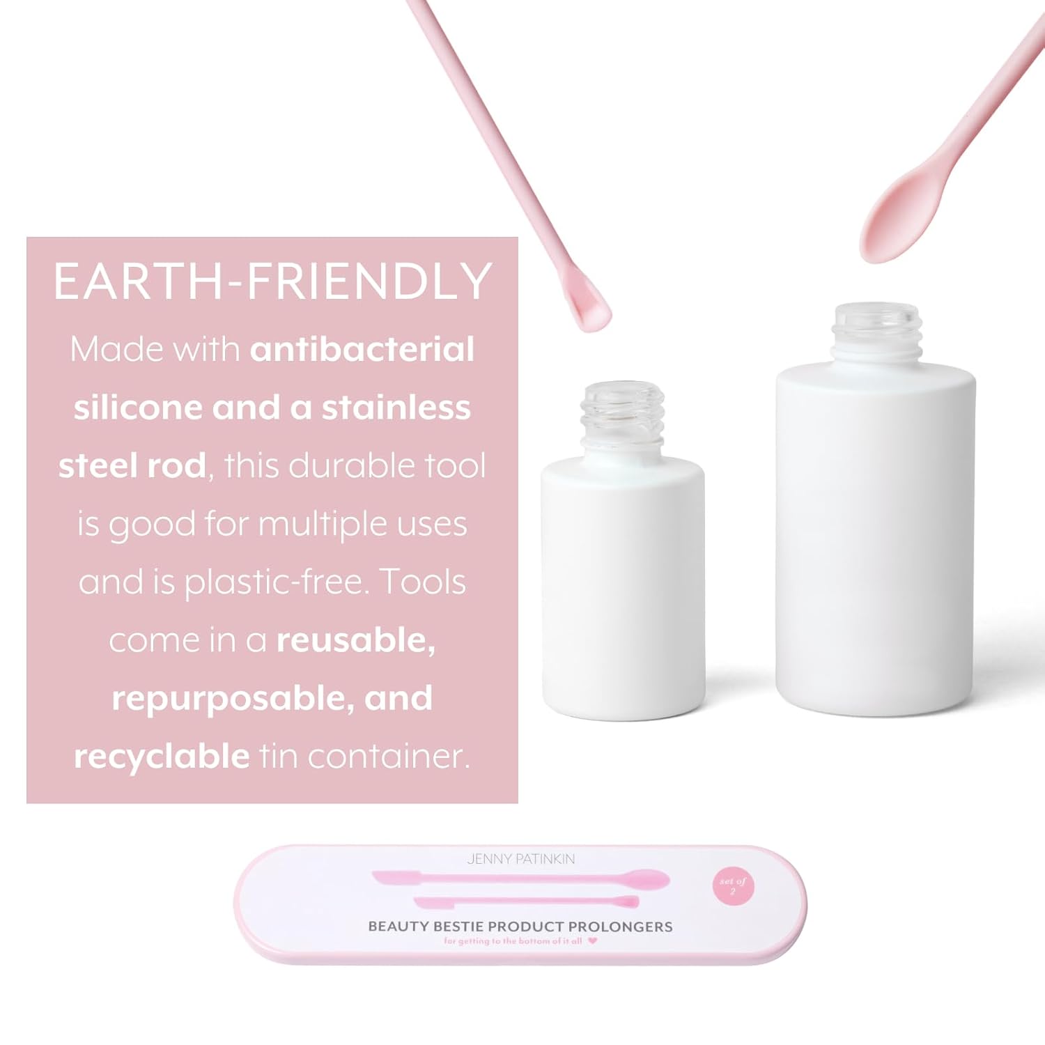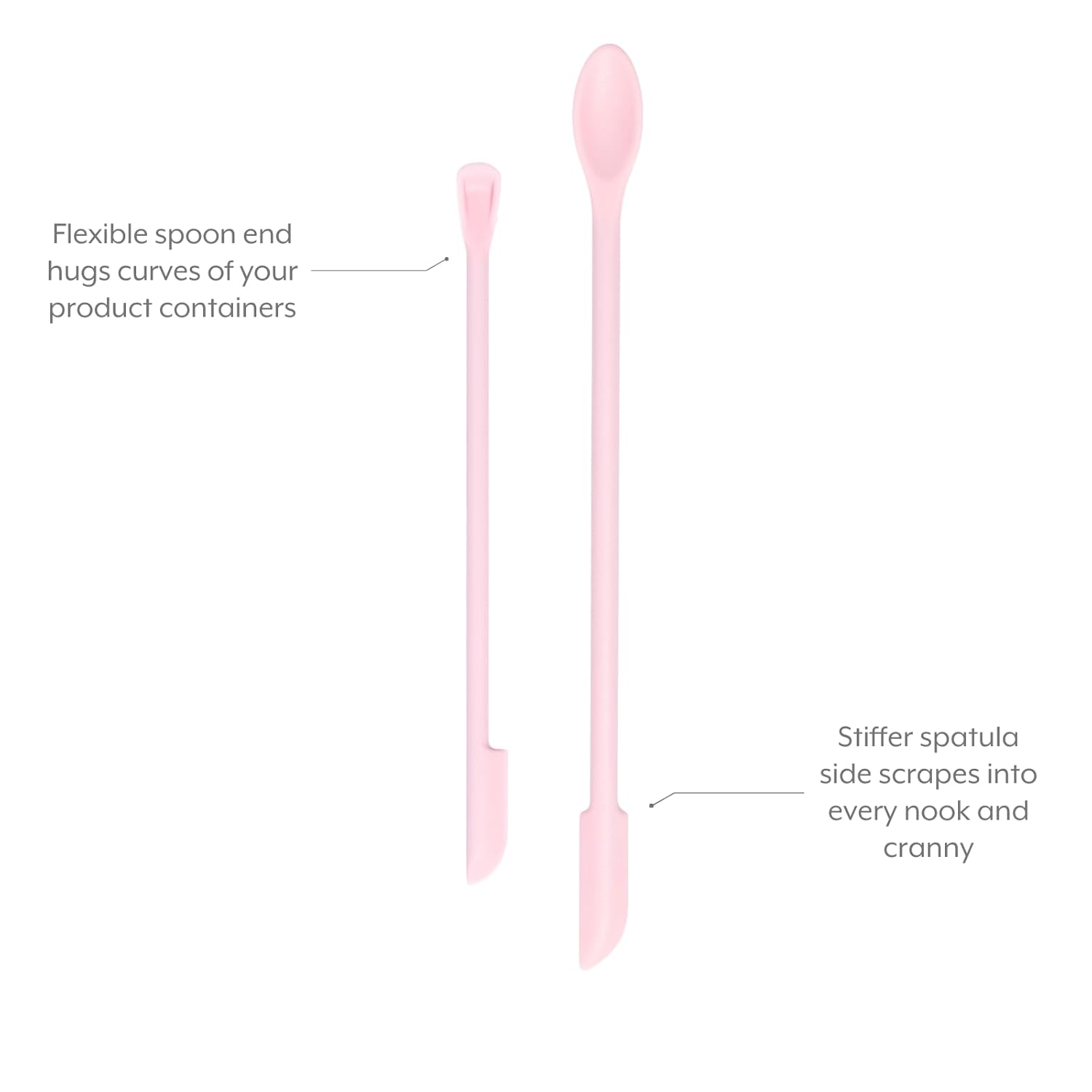 Flexible Jar Scraper Design – Designed to reach every last drop from jars and bottles. This beauty spatula makes it easy to reduce product waste and maximize value.