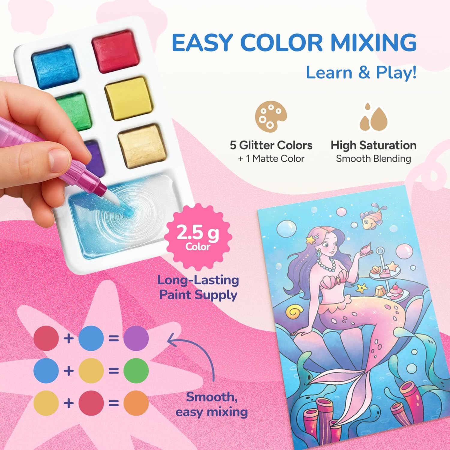 Whimsical Gift for Little Ones: A heartwarming 2-pack watercolor paint set that makes a joyful gift for holidays, birthdays, or any special surprise! Featuring Magical Pony and Ocean Princess themes, it brings twice the fun to kids and families, filling every crafting time with laughter and sparkle
