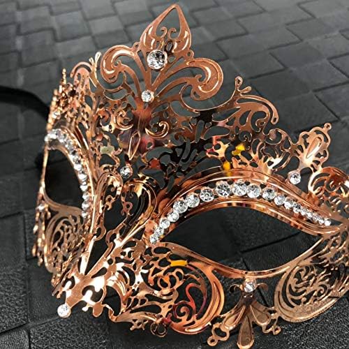 Painted, Venice style, using the high quality plastic and Eco-friendly materials The Venetian Mask secured with two Black silk ribbon ties Excellent to wear to Mardi Gras, Costume, Prom, Dance Parties, Mask Events & More. The mask is designed with intricate Venetian details Size: One Size fit Most, Material: Metal for Women