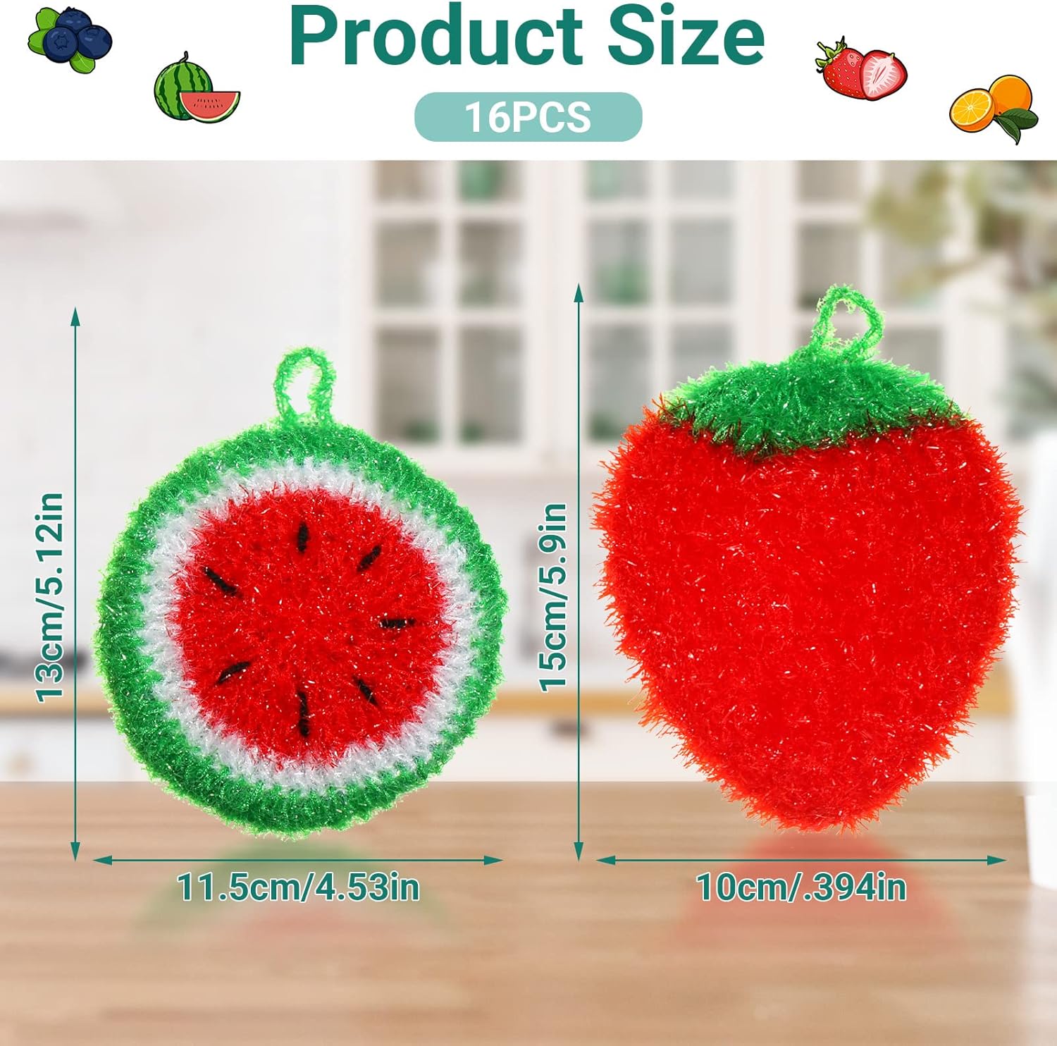 Suitable Sizes: these reusable dish scrubbers have different sizes for different fruit patterns; The strawberry is about 4.33 x 3.54 inches, and the watermelon is about 5.31 x 5.31 inches, moderate size can comfortably fit our palms; Choosing them makes washing dishes easy and fun, and it is convenient for us to clean kitchen appliances at home without taking up a lot of space; They are good accessories for your daily home