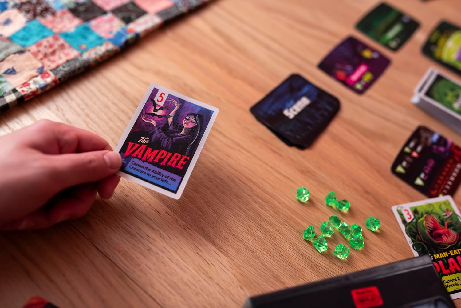 Secretly send out your monsters then flip them to capture mortals for points. Time your cards right to show no mercy and push your luck to come out on top.