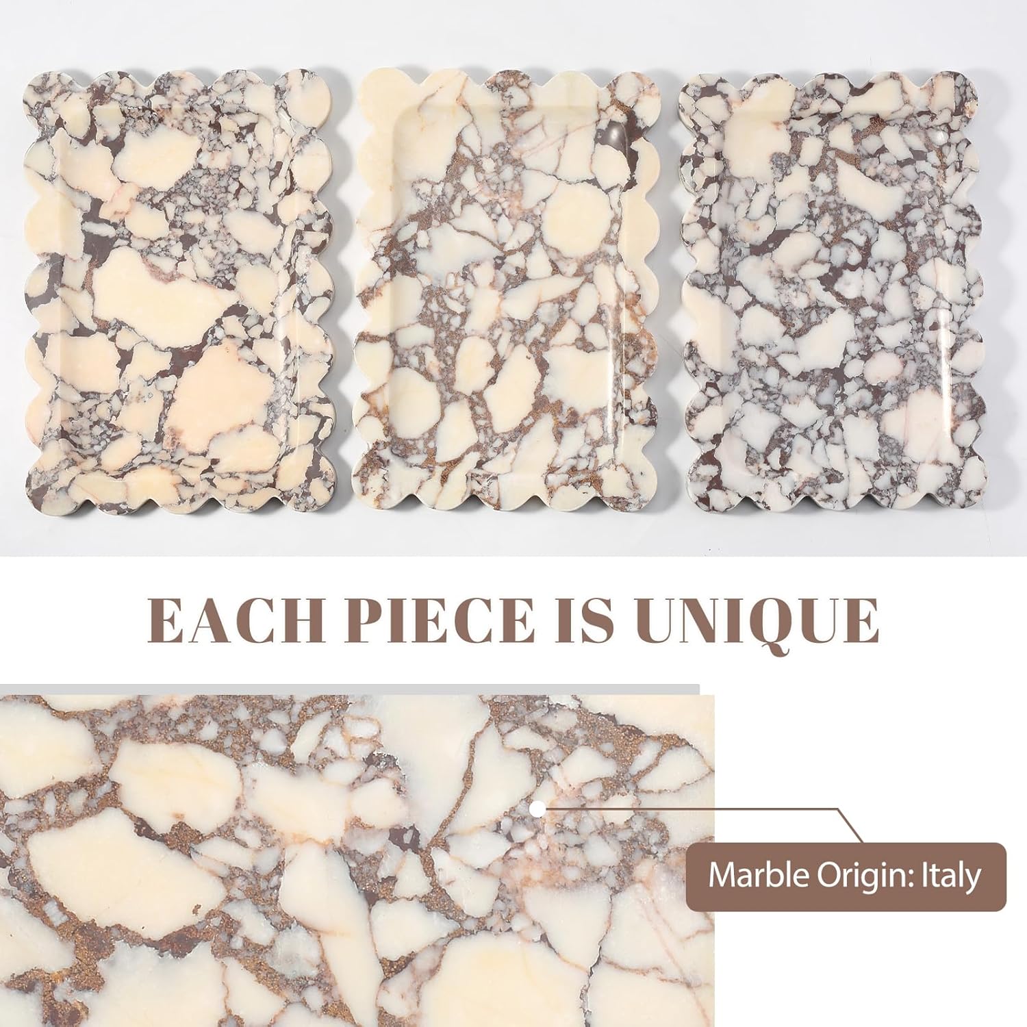 Koville Luxury Calacatta Viola Marble Tray, 11″x8″ Scalloped Marble Vanity Tray for Countertop Bathroom Kitchen Dresser, Natural Stone Tray for Jewelry Perfume Home Decor, Decorative Catchall Tray