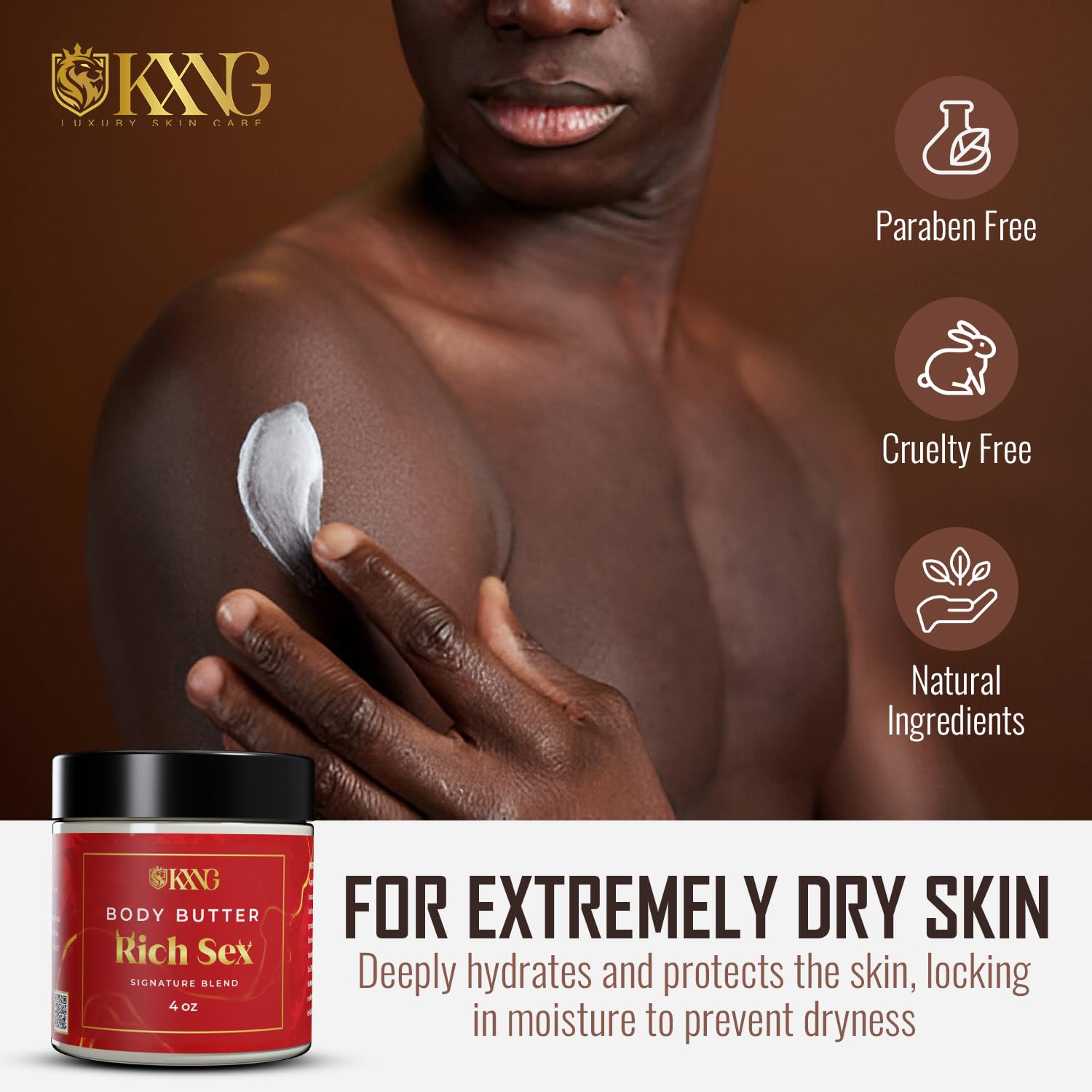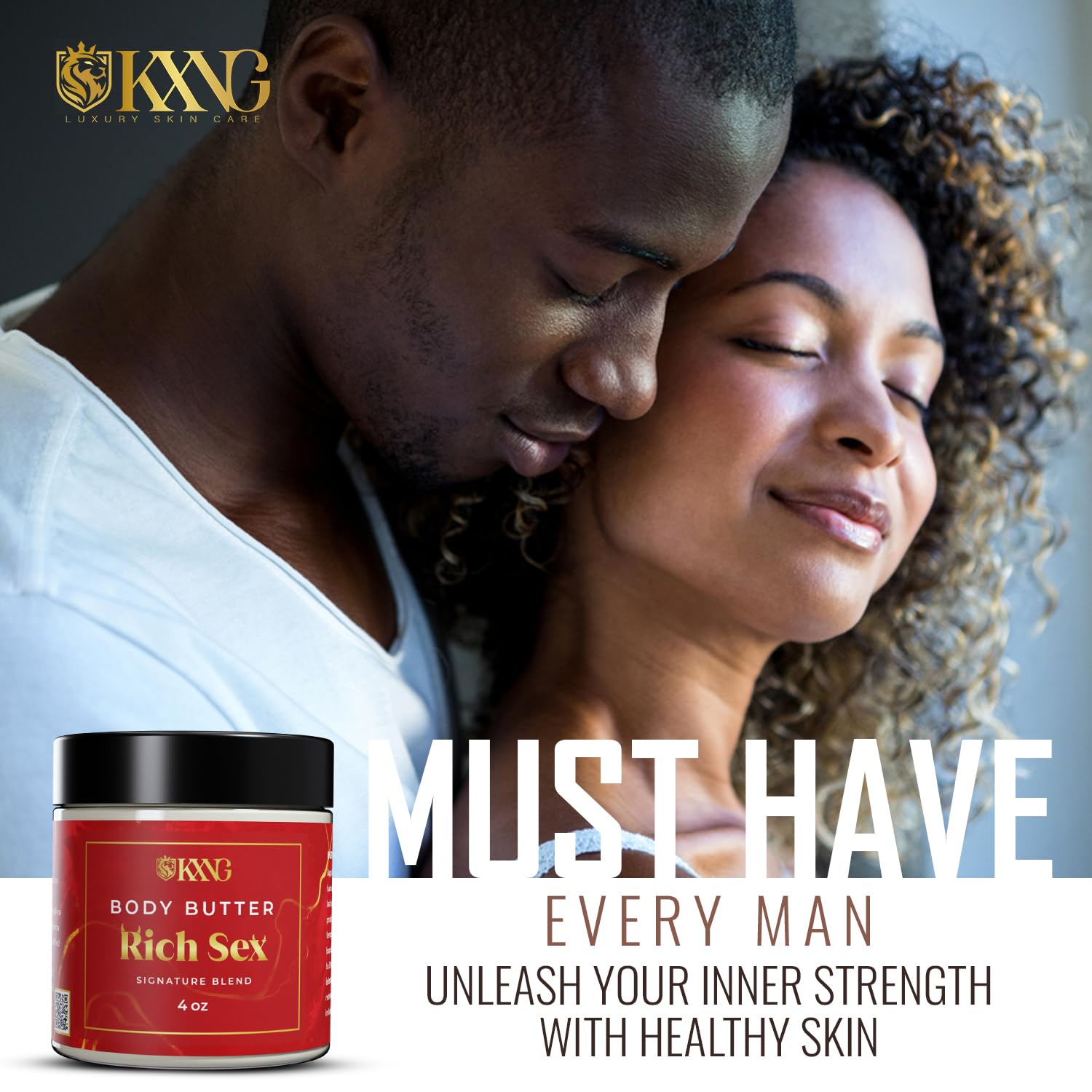 PHEROMONE INFUSED – Body Butters, Creams, Lotions and Oils for Men by KXNG Cosmetics. Moisturize and nourish All Skin types: extremely dry skin, normal, oily, combination, mature, and sensitive. Organic Raw Shea Butter, Cocoa Butter, Mango Butter, Kokum Butter, Coconut Oil, Body, Hand, Foot.