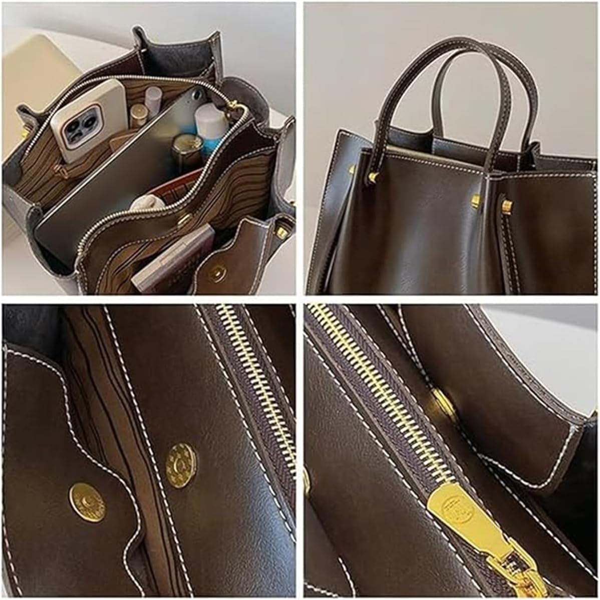 Leather Shoulder Bag for Women,Large Capacity Slouchy Work Tote Bag with Zipper,Fashion PU Purse Satchel Handbag