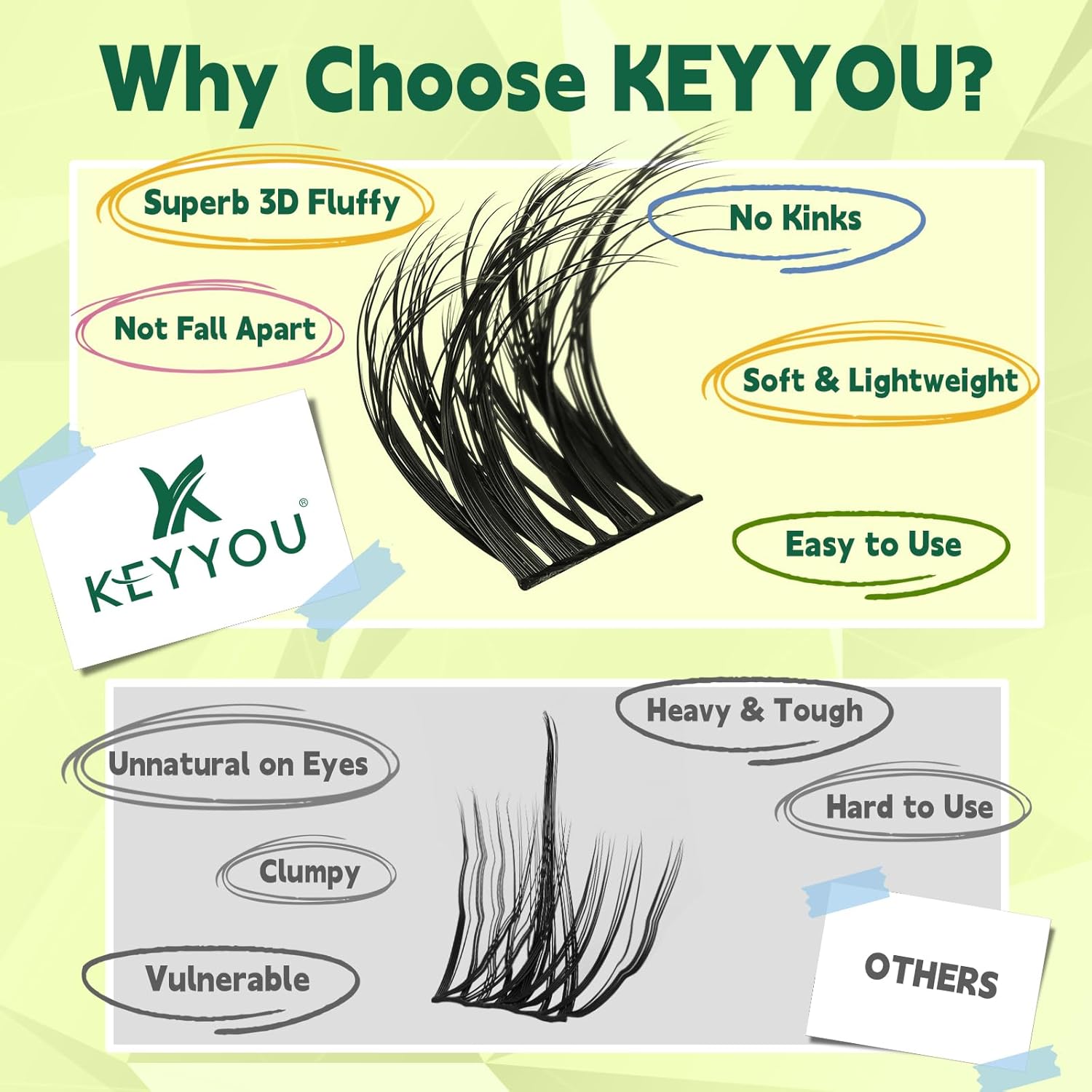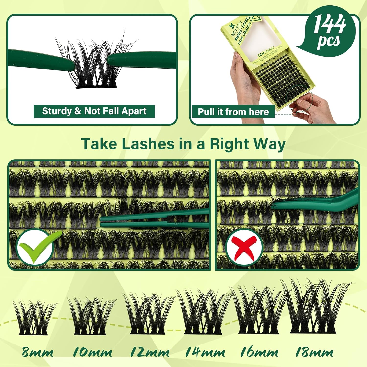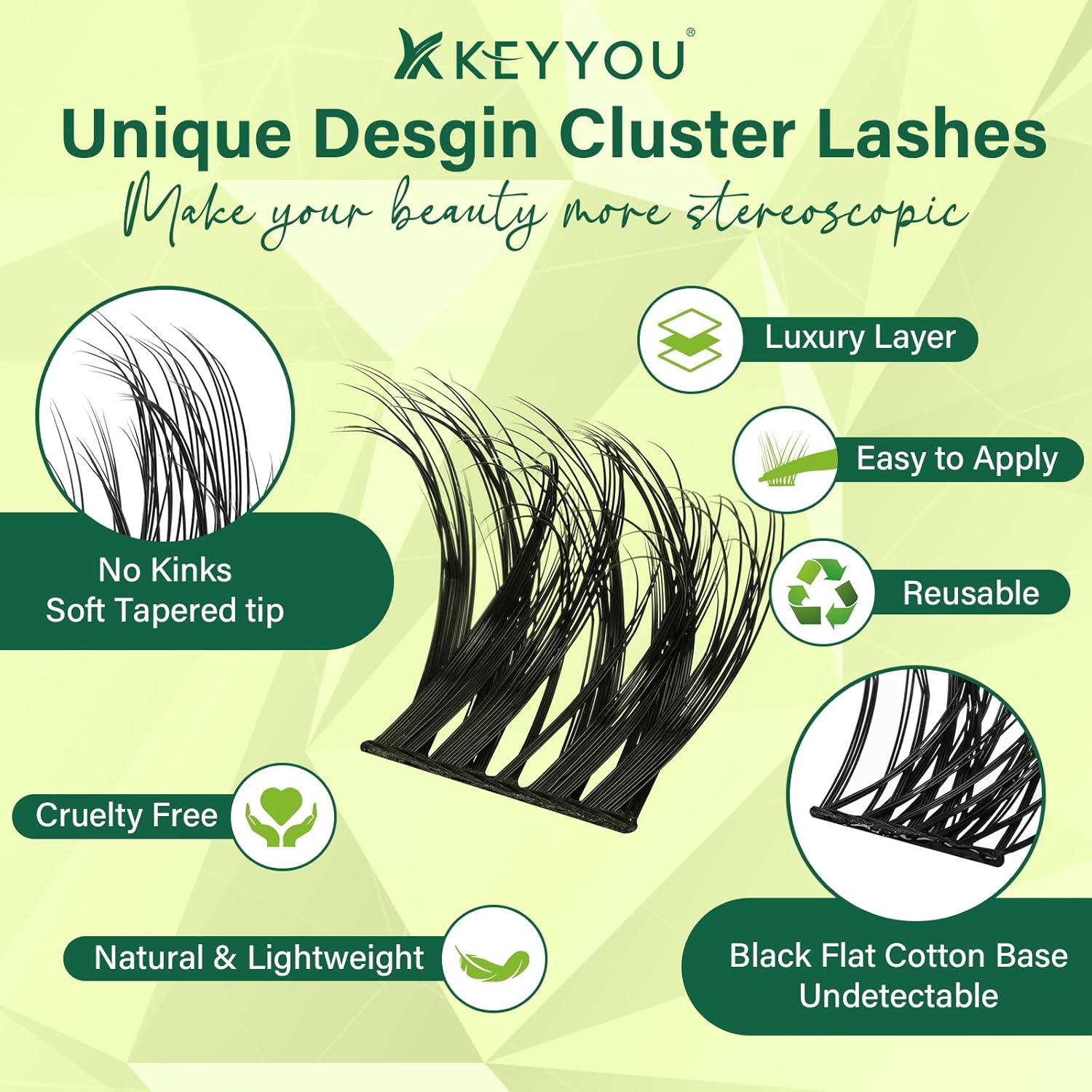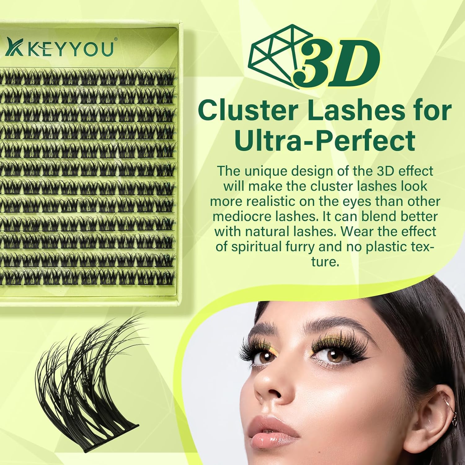 Soft&Comfortable:KEYYOU lash clusters are made of high-quality imported materials which is super soft,lightweight and more comfortable to wear.144pcs in one box, contains lashes of 8-18mix different lengths to better meet your needs and save time and money.