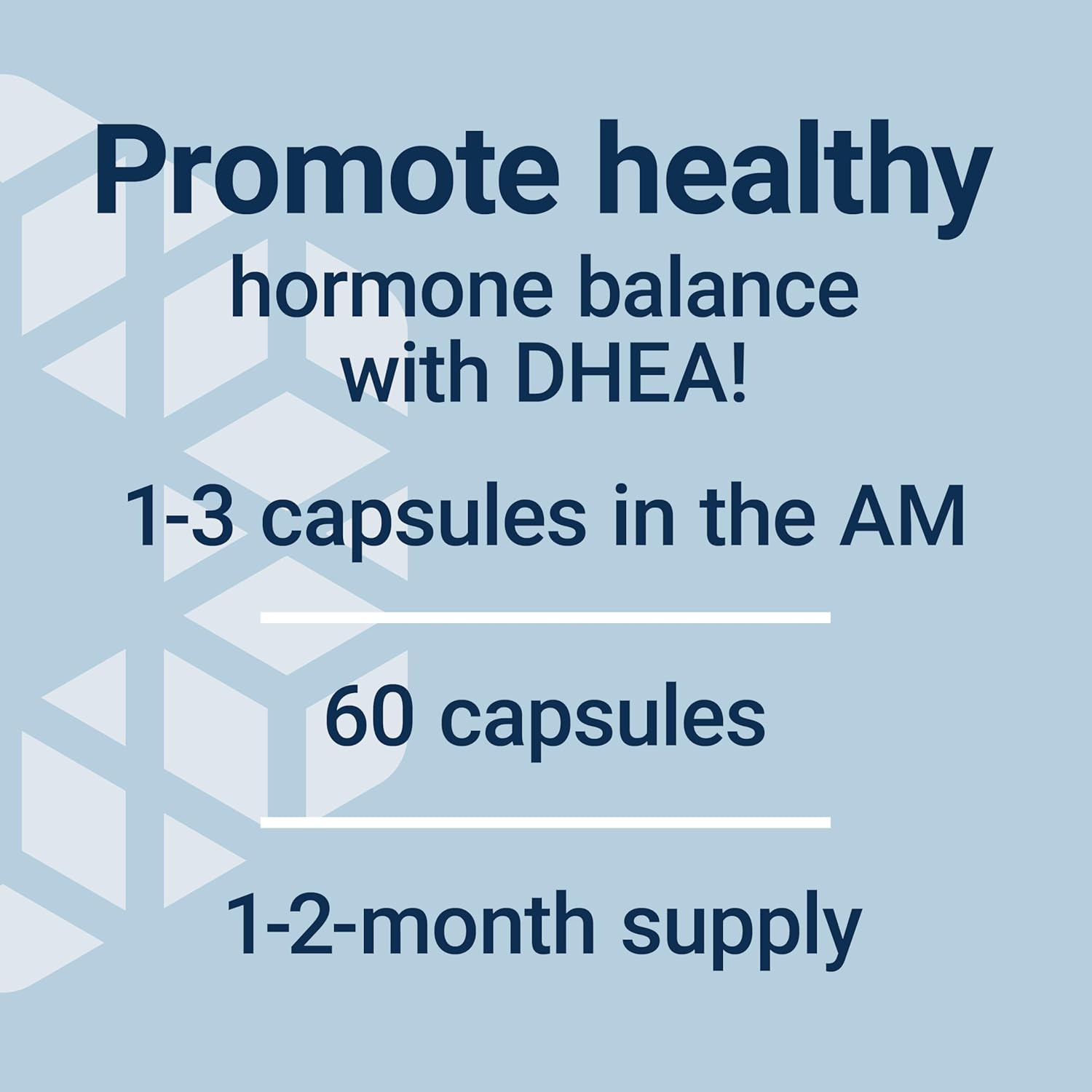 Keep DHEA levels in check—In order to develop a personalized DHEA regimen, doing regular blood work to evaluate blood levels and determine accurate dosage. Our DHEA formula is available in four different dosages to meet your specific needs.