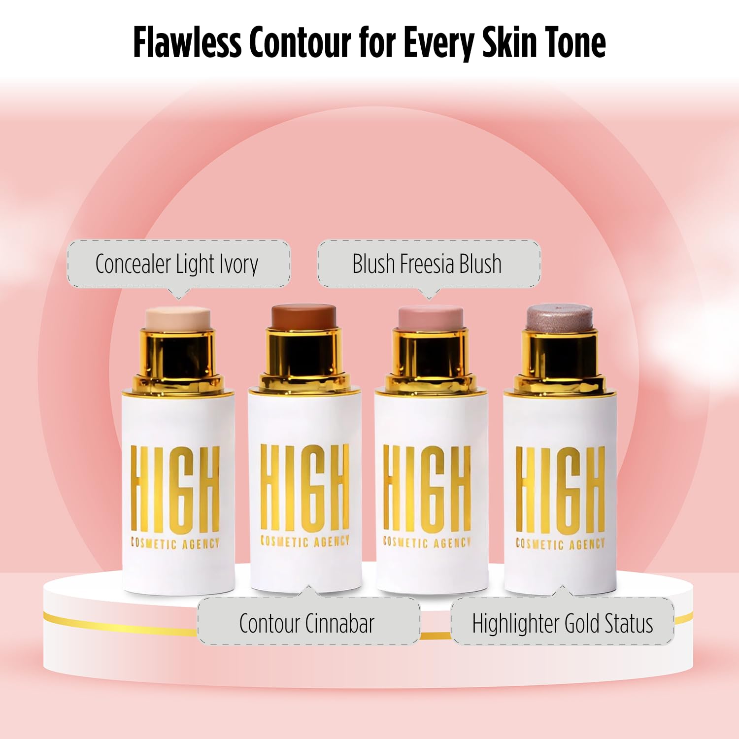 Luxury Contour Collection – Cream Contouring Makeup Set for Ivory Glow – 4-in-1 Contour Sticks with Concealer, Blush, Bronzer & Highlighter – Face Contour Set with Jojoba Oil (Ivory Glow)