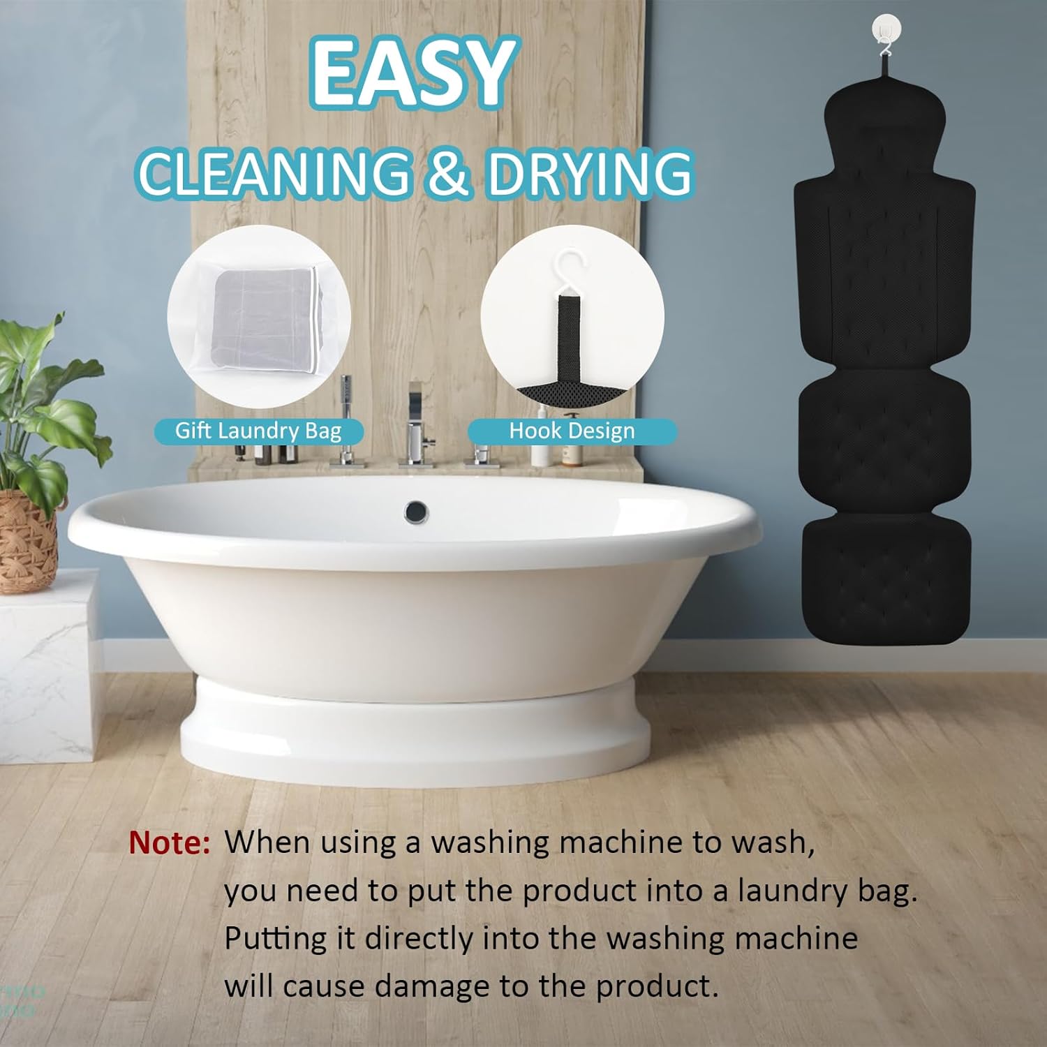【Easy Clean and Premium Quality】It is easy to hand wash and can be machine washed with the included mesh laundry bag to prevent the suckers from sticking to the washing machine drum or being torn off. For quick drying and easy storage, this bathtub pillow has practical built-in hooks throughout.