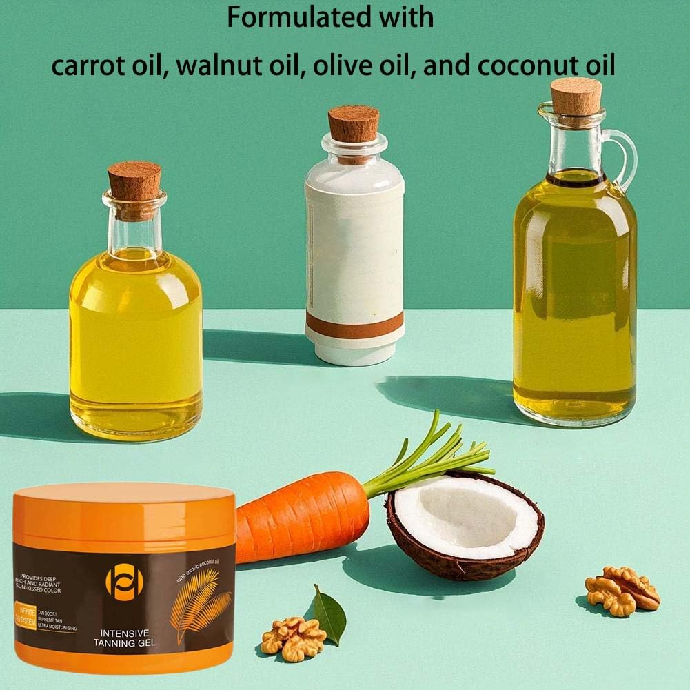 Enriched with Natural Ingredients for Skin Nourishment: Formulated with carrot oil, walnut oil, olive oil, and coconut oil, this tanning lotion promotes black skin production, and nourishes the skin, leaving it smooth, hydrated, and radiant