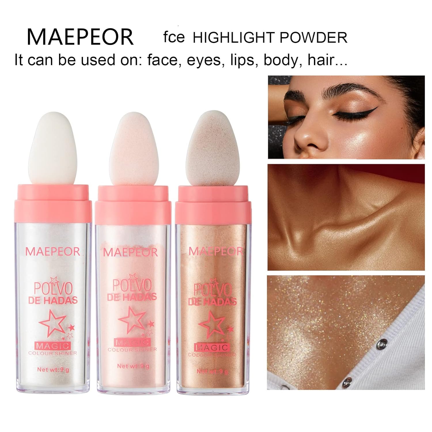 ✨【Highlight Puff Stick】It’s the popular Highlighter Puff Stick, called Polvo De Hadas, Fairy Bomb or Fairy Stick. The power is like shimmer highlighter, gives your body that tiny added sparkle for a day or night out, making you sparkle.(Package is updating)