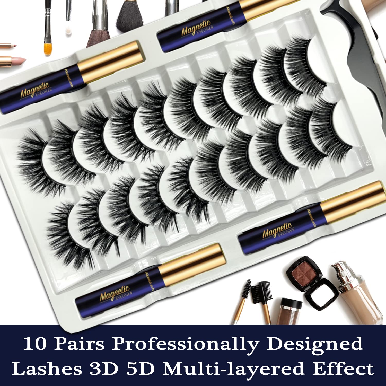 Magnetic Eyelashes Natural Look, Magnetic Lashes, Magnetic Eyelash kit, Magnetic Eyeliner with Magnet False Lashes -Reusable and Cruelty-Free 10Pairs.