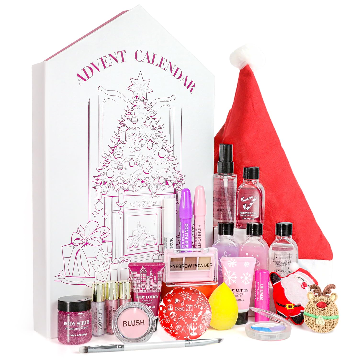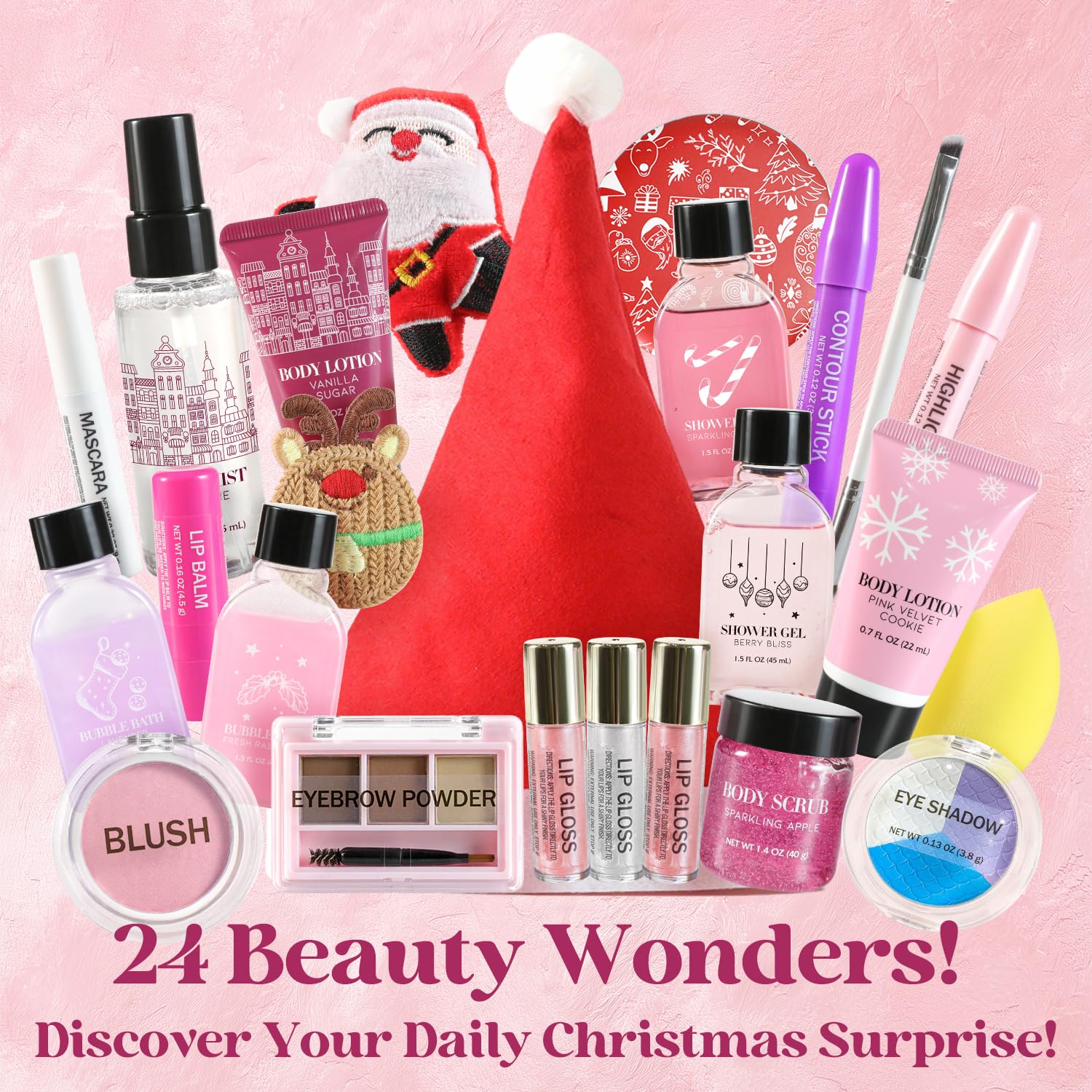 Makeup Advent Calendar 2025 Christmas Gifts, Beauty Calendar 2025 for Women, Teen Girls, Skin Care Advent Calendar with Mascara, Blush, Lip balm, Shower Gel, 2025 Self Care Gifts for Women