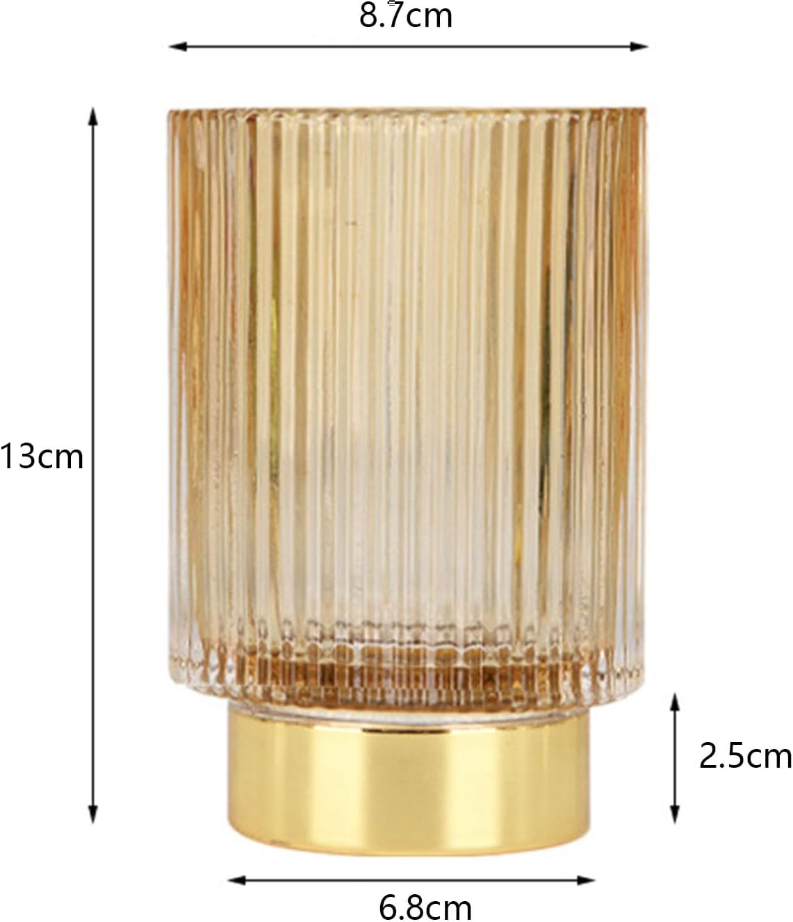 Clear & elegant yellow glass striped design makeup brush holder – The best makeup organizer will do wonders for even the most extensive cosmetic collections. This clear brush holder features a modern, minimalist striped design with a golden bottom and opening rim add a touch of luxury feelings for your countertop.