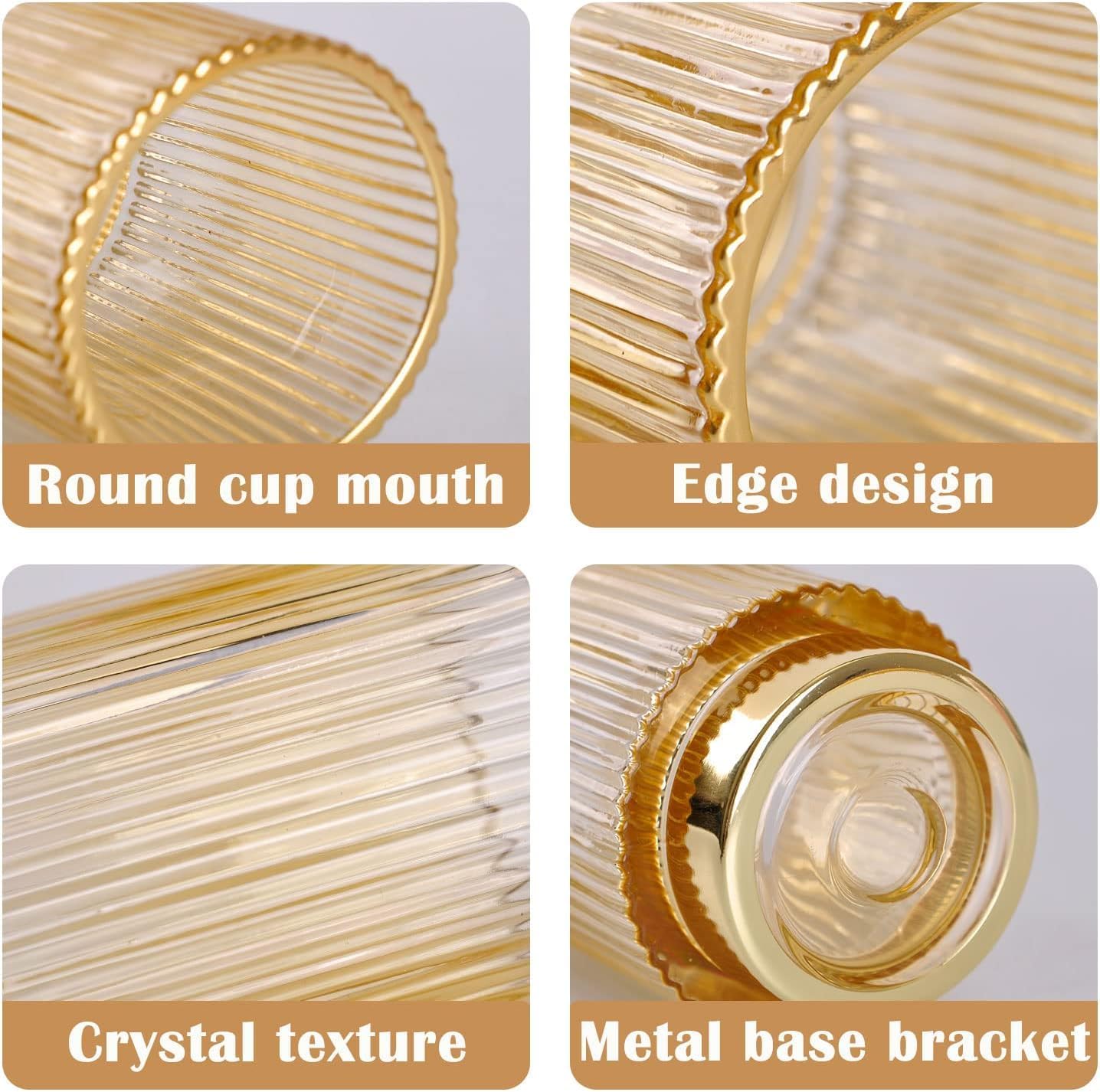 Clear & elegant yellow glass striped design makeup brush holder – The best makeup organizer will do wonders for even the most extensive cosmetic collections. This clear brush holder features a modern, minimalist striped design with a golden bottom and opening rim add a touch of luxury feelings for your countertop.